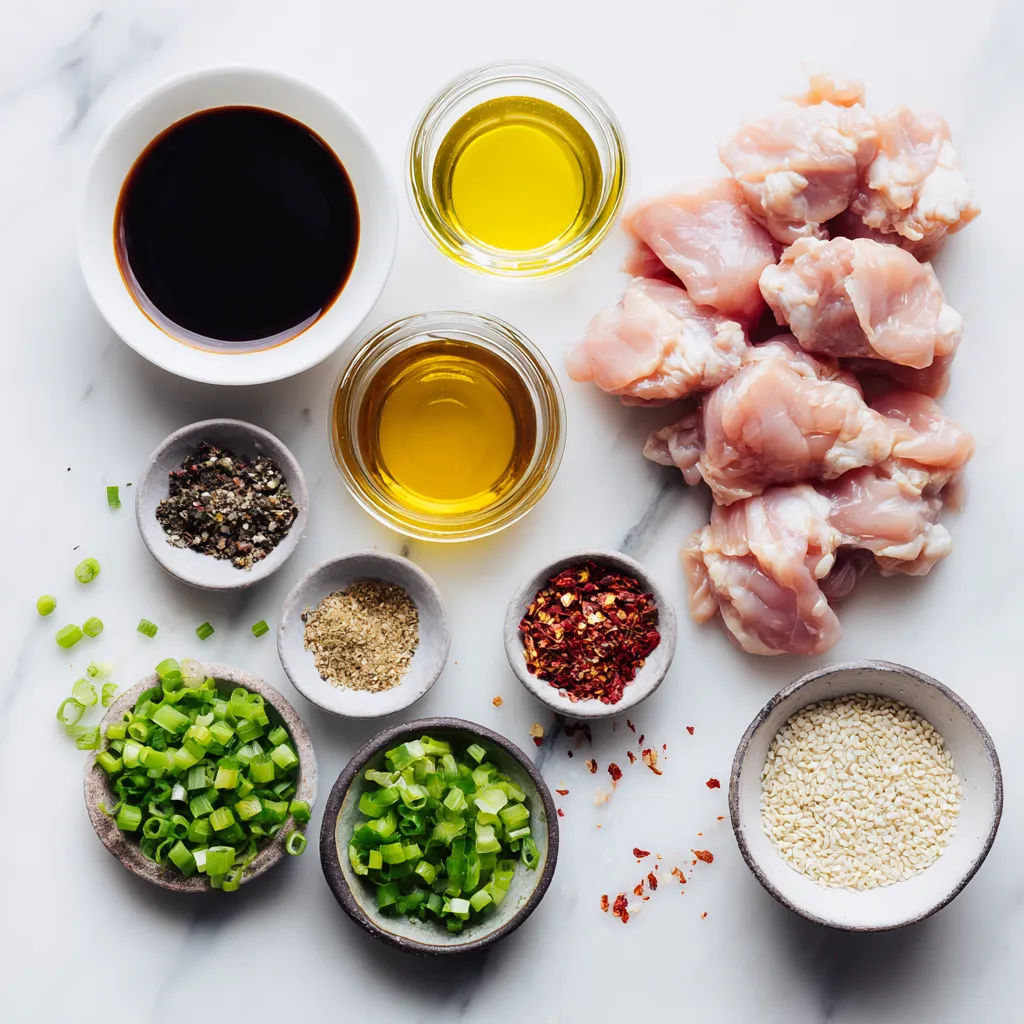 Gather these ingredients to make a tasty Air Fryer Hibachi Chicken. The chicken thighs are the star. They stay juicy and flavorful. Soy sauce adds a nice saltiness. Sesame oil gives it a lovely nutty taste. Honey adds a bit of sweetness that balances the flavors.