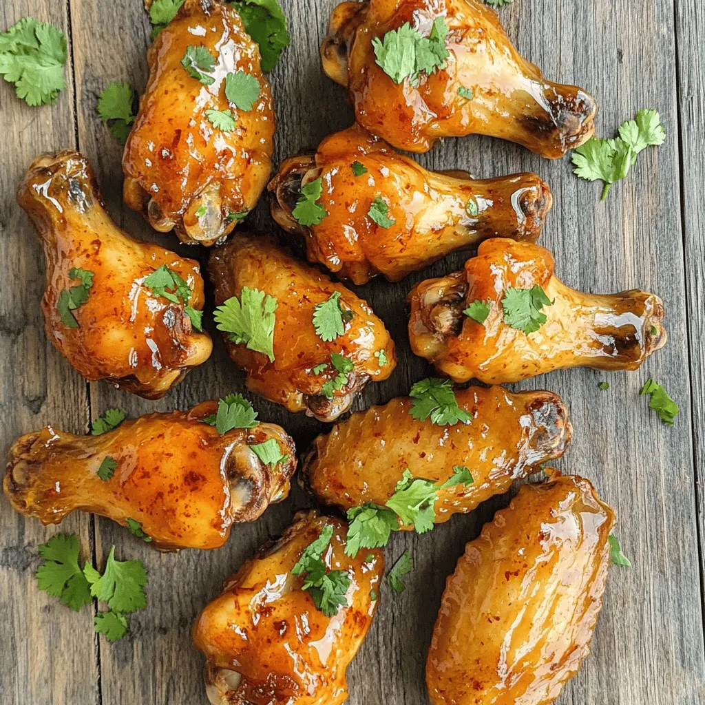 - 2 lbs chicken wings - 1/4 cup honey - 2 tablespoons chipotle sauce - 2 tablespoons soy sauce - 1 tablespoon olive oil - 1 teaspoon garlic powder - 1 teaspoon onion powder - 1/2 teaspoon smoked paprika - Salt and pepper to taste - Fresh cilantro, for garnish - Lime wedges for serving - Extra chipotle sauce for more heat - Sliced green onions for garnish - Mixing bowl for the marinade - Air fryer for cooking - Cooking spray to prevent sticking - Tongs for flipping the wings - Serving platter for presentation Gather these items before you start. Fresh wings and a good air fryer make all the difference. These ingredients work together to create a sweet and spicy flavor that you’ll love. First, grab a mixing bowl. Add 1/4 cup of honey, 2 tablespoons of chipotle sauce, and 2 tablespoons of soy sauce. Next, pour in 1 tablespoon of olive oil. Sprinkle in 1 teaspoon of garlic powder, 1 teaspoon of onion powder, and 1/2 teaspoon of smoked paprika. Season with salt and pepper to taste. Mix everything well until smooth. Now, take your 2 lbs of chicken wings and add them to the bowl. Toss the wings until they are fully covered in the marinade. Cover the bowl and put it in the fridge. Let them marinate for at least 30 minutes. For the best flavor, try marinating overnight. While the wings soak up the flavor, it's time to preheat the air fryer. Set it to 380°F (190°C) for about 5 minutes. This step helps the wings cook evenly. Before you add the wings, spray the air fryer basket lightly with cooking spray. This helps prevent sticking and keeps your wings crisp. After the marinating time, take the chicken wings out of the fridge. Place them in a single layer in the basket. Do not overcrowd them; this helps them cook better. Cook the wings for 25 to 30 minutes. Flip them halfway through to ensure they get crispy on both sides. You will know they are ready when they turn golden brown. Once done, let the wings rest for 5 minutes. This helps keep them juicy. Before serving, sprinkle fresh cilantro on top for a burst of color and flavor. Enjoy your delicious air fryer honey chipotle chicken wings! To get those wings crispy, start with dry chicken. Pat them with paper towels before marinating. This step helps the marinade stick better. Also, avoid crowding the air fryer basket. Give each wing space to crisp up. Flip the wings halfway through cooking. This ensures even browning and a great texture. Want to boost the flavor? Add more spices! Try cayenne pepper for heat or lime juice for zest. You can also mix in some brown sugar. It adds sweetness and helps caramelize the wings. For extra richness, swap the olive oil with melted butter. You can even toss the cooked wings with more chipotle sauce for a kick. Don’t skip the marinating step. It makes a big difference in taste. Also, watch the cooking time. Under-cooked wings can be unsafe. Overcooked wings can turn dry. Use a meat thermometer to check for doneness. Aim for 165°F (74°C). Finally, don’t forget to let the wings rest after cooking. This helps lock in juices and keeps them tender. {{image_2}} You can change the flavor of your wings with different marinades. Here are some fun ideas: - BBQ Marinade: Replace honey and chipotle sauce with your favorite BBQ sauce. - Lemon Pepper Marinade: Use lemon juice, black pepper, and garlic for a zesty kick. - Teriyaki Marinade: Swap the honey for teriyaki sauce. This adds a sweet and savory touch. - Buffalo Sauce Marinade: Mix buffalo sauce with some butter for a spicy taste. Feel free to mix and match these ideas. Each marinade gives your wings a unique taste. You can adjust the heat level of your wings easily. Here’s how: - For Spicy Wings: Add more chipotle sauce or even some cayenne pepper. - For Mild Wings: Use less chipotle sauce and more honey. This keeps them sweet and tasty. - Balance the Heat: Try a mix of both spicy and mild for a fun flavor. Adjust the heat to match your taste. Your friends will love the choice! How you serve your wings can make them even better. Here are some ideas: - Dipping Sauces: Offer ranch, blue cheese, or extra chipotle sauce for dipping. - Side Dishes: Serve with celery sticks, carrot sticks, or a fresh salad. - Garnish: Sprinkle fresh cilantro or green onions on top for color and flavor. These serving ideas make your meal complete and fun to eat. Enjoy your delicious wings! After enjoying your honey chipotle chicken wings, store any leftovers properly. Place them in an airtight container. This keeps them fresh. Make sure to cool them to room temperature first. Store the wings in the fridge for up to three days. When you're ready to eat the wings again, reheating is easy. Preheat your air fryer to 350°F (175°C). Place the wings in a single layer. Heat for about 5 to 7 minutes. This gives them a nice crisp again. Check that they are hot all the way through before serving. If you want to save wings for later, freezing works well. First, let them cool completely. Then, wrap them tightly in plastic wrap. Place the wrapped wings in a freezer bag. Remove as much air as possible. You can freeze them for up to three months. When you are ready to eat, thaw in the fridge overnight. Reheat as mentioned above for best results. Yes, you can use frozen chicken wings. Just cook them a bit longer. Increase the air fryer time by 5-10 minutes. Make sure the wings reach an internal temperature of 165°F. This ensures they are safe to eat and fully cooked. However, thawing them in the fridge overnight gives the best results. It helps the marinade soak in better. To make your wings extra crispy, follow these tips: - Pat the wings dry before marinating. This removes extra moisture. - Use a light spray of cooking oil on the wings. - Cook them in a single layer. Overcrowding makes them steam instead of crisp. - Flip the wings halfway through cooking for even browning. These steps will give you that nice crunch! Honey chipotle chicken wings pair well with many sides. Here are some ideas: 