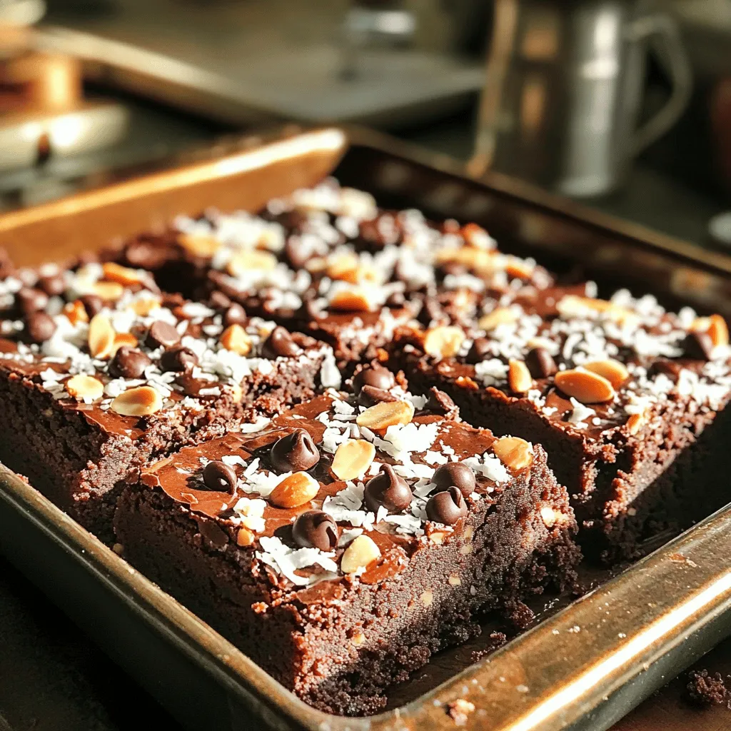 In a separate bowl, whisk together 1 cup of all-purpose flour, 1 cup of unsweetened cocoa powder, 1/2 teaspoon of baking powder, and 1/4 teaspoon of salt. This mix will give your brownies a rich chocolate flavor. Gradually fold the dry ingredients into the wet mixture. Do this gently to keep the batter light. Once combined, fold in 1 cup of sweetened shredded coconut and 1 cup of chopped almonds. This adds texture and a delightful crunch. Now, your batter is ready for the baking pan!