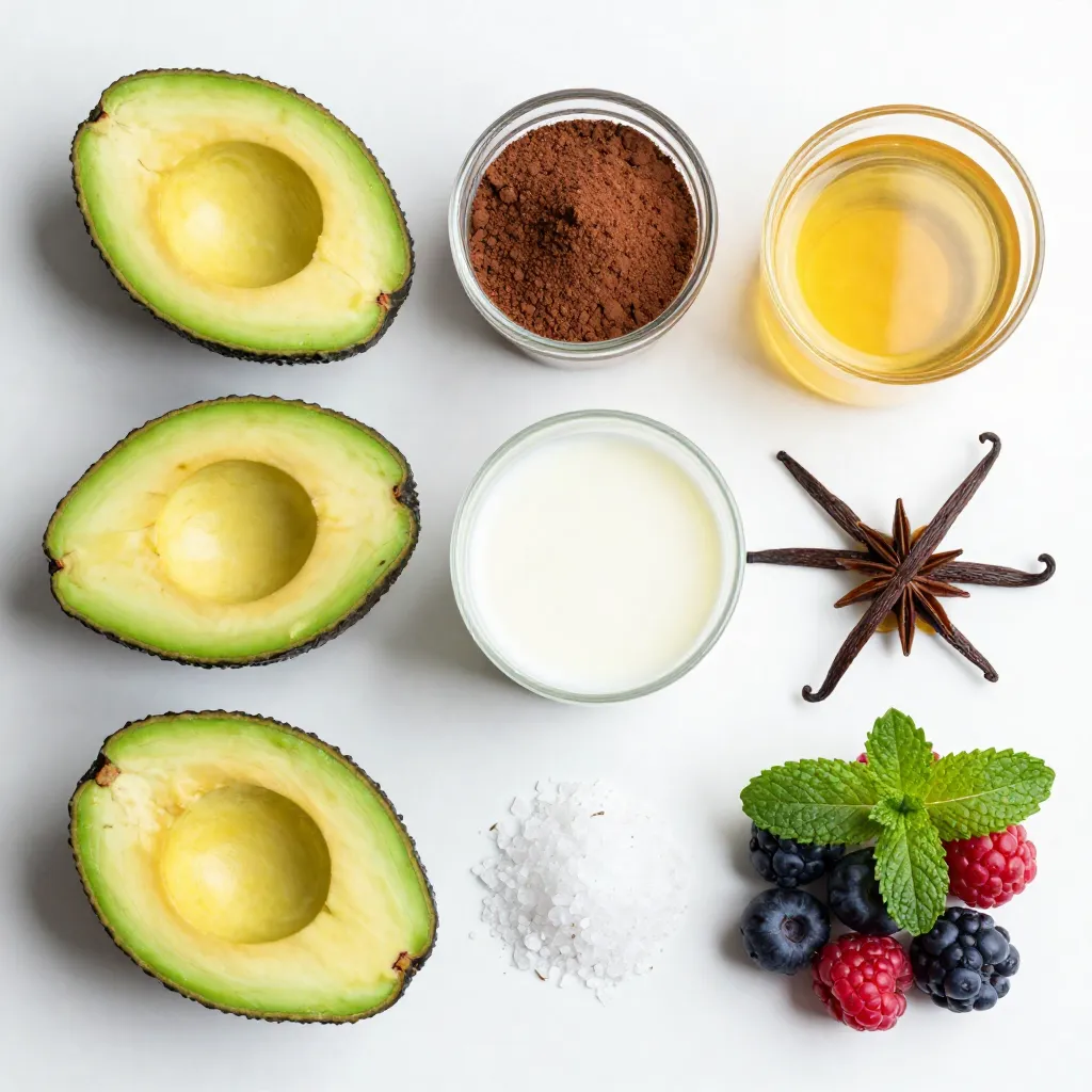 To make a rich and creamy avocado chocolate mousse, gather these ingredients: