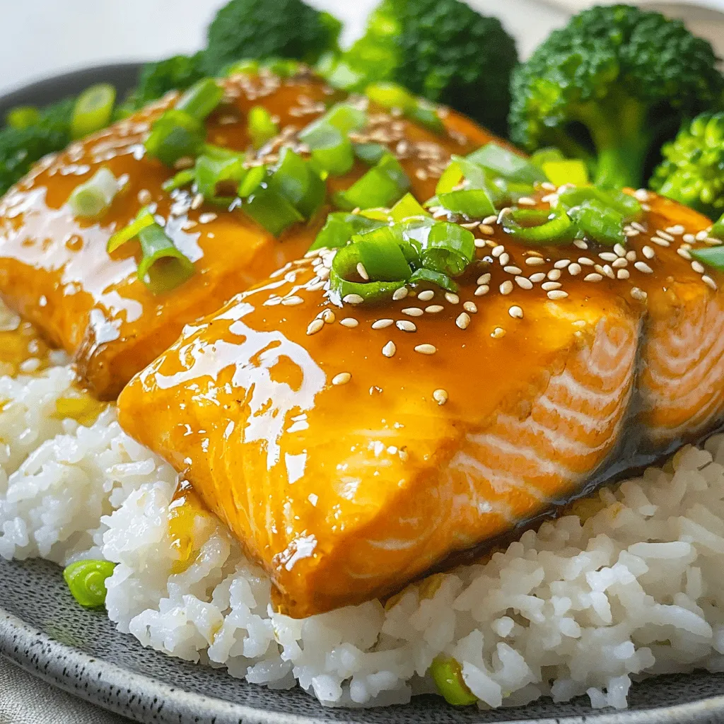 These simple ingredients come together to create a tasty dish. The salmon fillets are the star here. They are rich in flavor and healthy too. The marinade, made with soy sauce, honey, and rice vinegar, gives the salmon a sweet and tangy taste. Sesame oil adds a nice nutty flavor. Garlic and ginger bring warmth and depth.