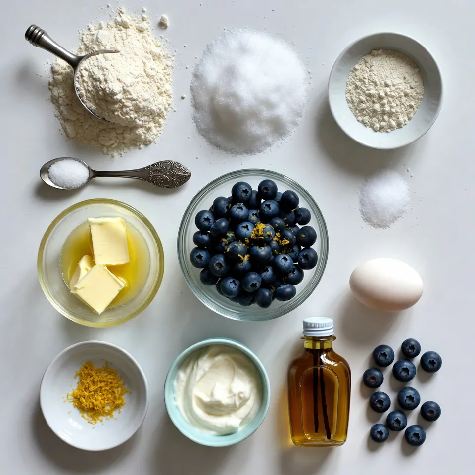 To make these blueberry muffins, you need simple ingredients. The flour provides structure, while sugar adds sweetness. Baking powder and baking soda help the muffins rise. Salt brings out the flavors.