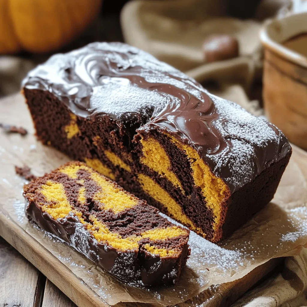- 1 cup pumpkin puree - 1/2 cup sugar - 1/2 cup brown sugar, packed - 1/2 cup vegetable oil - 3 large eggs - 1 teaspoon vanilla extract The main ingredients create the rich foundation of the loaf. Pumpkin puree gives moisture and flavor. Sugar and brown sugar add sweetness and depth. Eggs bind the mix, while oil keeps the loaf tender. Vanilla adds a warm, inviting taste. - 1 1/2 cups all-purpose flour - 1 teaspoon baking powder - 1/2 teaspoon baking soda - 1/2 teaspoon salt - 1 teaspoon ground cinnamon - 1/2 teaspoon ground nutmeg The dry ingredients balance the wet ones. Flour provides structure, while baking powder and soda help the loaf rise. Salt enhances flavor. Cinnamon and nutmeg add a warm, spiced aroma. These spices turn the loaf into a fall favorite. - 1/2 cup unsweetened cocoa powder - 1/4 cup semi-sweet chocolate chips (optional) Chocolate elements bring a rich, bold flavor. Cocoa powder adds depth without extra sweetness. If you want more chocolate, add semi-sweet chips. They melt into the loaf, giving little pockets of joy. This creates a delightful contrast with the pumpkin. First, preheat your oven to 350°F (175°C). This step warms the oven for even baking. While the oven heats, grease a 9x5-inch loaf pan. Use cooking spray or butter to coat the pan. This helps the loaf come out easily after baking. In a large bowl, whisk together the pumpkin puree, sugar, brown sugar, and vegetable oil. Make sure the mixture is smooth. Then, add the eggs and vanilla extract. Whisk until everything blends well. The wet ingredients give the loaf moisture and flavor. In another bowl, whisk the all-purpose flour, baking powder, baking soda, salt, cinnamon, and nutmeg. This mix adds structure and spice to the loaf. Gradually add the dry ingredients to the wet mix. Stir gently until just combined. Be careful not to over-mix; this keeps the loaf soft. Now, divide the batter into two bowls. Sift cocoa powder into one bowl and mix it in. This creates the chocolate batter. To make the marble effect, scoop alternating spoonfuls of pumpkin and chocolate batter into the loaf pan. Use a knife to swirl them together lightly. Don't overdo the swirling; you want to see both colors. - Avoiding over-mixing: When you mix the batter, do it gently. Over-mixing can make the loaf tough. Mix until you see no dry flour. The batter should be lumpy, not smooth. This keeps the loaf soft and tender. - Allowing for proper cooling: After baking, let the loaf cool in the pan for 10-15 minutes. This helps it set. Then, move it to a wire rack to cool fully. This cooling time keeps the loaf from becoming soggy. - Checking for doneness: Use a toothpick to check the loaf. Insert it into the center. If it comes out clean, the loaf is ready. If it has batter on it, bake a little longer. Every oven is different, so keep an eye on it. - Adjusting baking time based on oven variations: Ovens can vary in heat. If your oven runs hot, check the loaf a little early. If it runs cool, it may need more time. Just be sure to test with a toothpick for best results. - Dusting with powdered sugar: After the loaf cools, dust the top lightly with powdered sugar. This adds a nice touch and looks pretty. It gives the loaf a sweet finish without being too much. - Drizzling chocolate glaze: For extra sweetness, drizzle chocolate glaze over the sliced loaf. Melt some chocolate with a bit of cream for a simple glaze. It makes the loaf look fancy and tastes amazing! {{image_2}} You can play with flavors in your loaf. Here are some ideas: - Spices: Add more spices like ginger or cloves for warmth. A pinch of allspice gives a nice kick too. - Extracts: Try almond or orange extract for a unique twist. Just a few drops can change the taste greatly. - Nuts: Walnuts or pecans add a nice crunch. Chop them up and fold them into the batter. - Dried Fruit: Raisins or cranberries add sweetness and chewiness. Mix them in for extra flavor. Want to adjust the recipe for special diets? Here’s how: - Gluten-Free: Use gluten-free flour blends instead of all-purpose flour. Make sure it has xanthan gum for better texture. - Vegan: Replace eggs with flax eggs. Mix one tablespoon of flaxseed meal with three tablespoons of water. Let it sit until it thickens. - Dairy-Free: Use applesauce instead of oil for a lighter loaf. This also adds moisture and sweetness. These variations let you enjoy this loaf in many ways! To keep your Bakery-Style Chocolate Pumpkin Marble Loaf fresh, you have two options. You can store it at room temperature or in the fridge. - Room Temperature: Store the loaf in a cool, dry place. Use an airtight container or wrap it tightly in plastic wrap. This helps keep it moist for about 3-4 days. - Refrigerator Storage: If you prefer to store it in the fridge, the loaf can last up to a week. Wrap it well to prevent it from drying out. Make sure to seal it tightly. This keeps air out and moisture in. Freezing is a great way to save your loaf for later. You can freeze it before or after baking. - Before Baking: Prepare the batter and spoon it into the loaf pan. Wrap the pan tightly in plastic wrap or foil. Freeze it for up to 3 months. When ready to bake, just remove it from the freezer and bake straight from frozen. Just add about 10-15 extra minutes to the baking time. - After Baking: Let the cooled loaf rest. Wrap it in plastic wrap, then foil. This helps prevent freezer burn. You can freeze it for up to 3 months. When reheating, thaw it in the fridge overnight. Then, warm it in the oven at 350°F (175°C) for 10-15 minutes. This brings back the fresh-baked taste. This blog post covered how to make a delicious pumpkin chocolate loaf. We discussed the key ingredients, step-by-step instructions, and helpful tips for the perfect bake. Remember, avoid over-mixing for a great texture. You can also explore variations for different tastes and dietary needs. Proper storage helps keep your loaf fresh for longer. Enjoy your baking journey! It's a fun way to tre