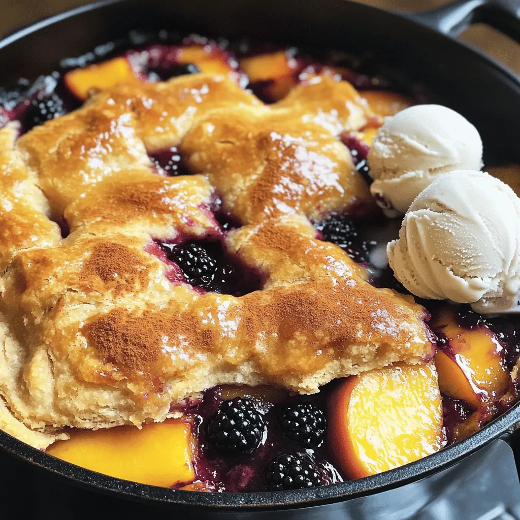 Blackberry peach cobbler pairs well with vanilla ice cream. A dollop of whipped cream also adds a nice touch. You can serve it warm or cold. For a fun twist, try drizzling caramel sauce on top. Fresh mint leaves can add a pop of color and flavor. Enjoy your cobbler with a scoop of joy!