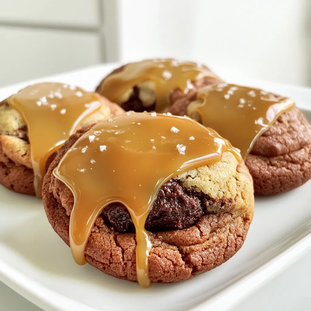 Serve your cookies warm on a rustic wooden board. This makes them look inviting and homemade. For a special touch, drizzle extra caramel sauce on the side for dipping.