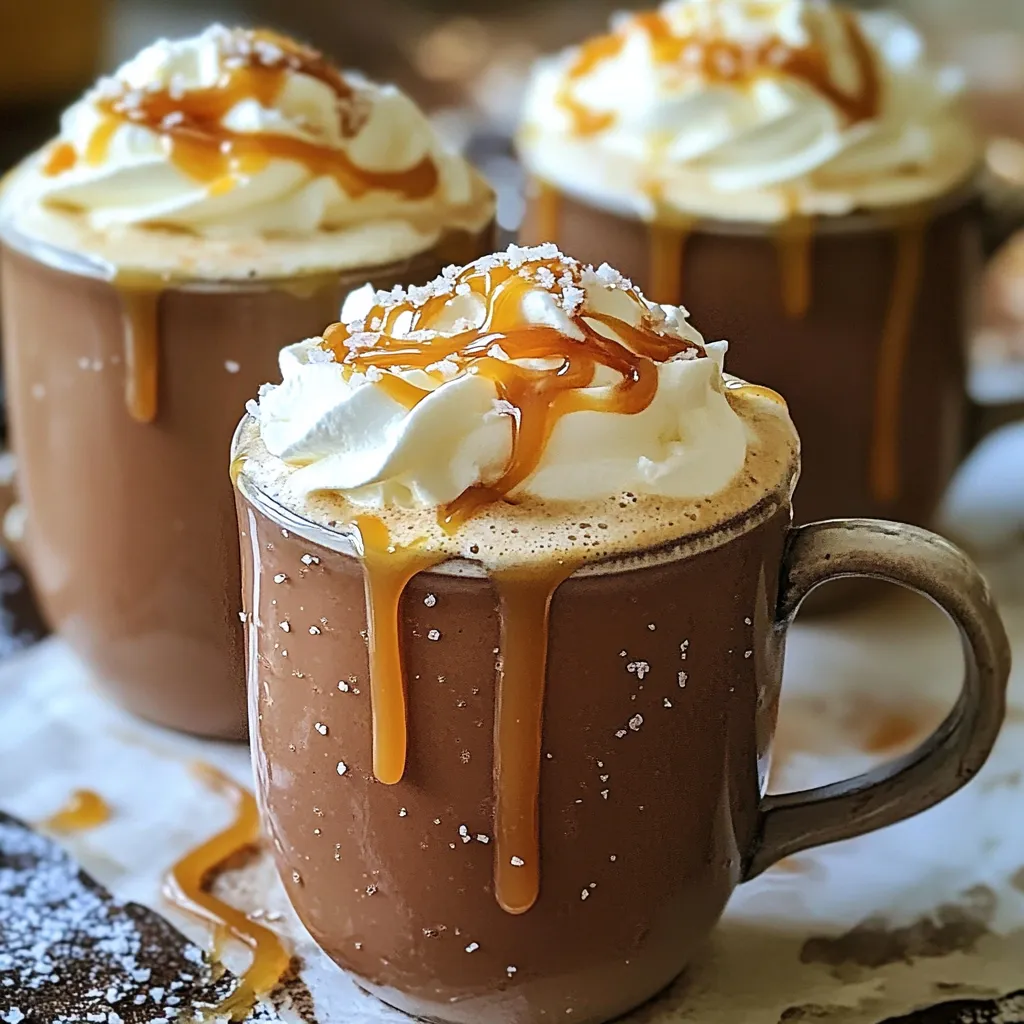Gather these ingredients before you start. Whole milk and heavy cream create a rich base. The semi-sweet chocolate chips add a deep, sweet flavor. Cocoa powder boosts the chocolate taste. Caramel sauce brings in that sweet, buttery twist. Vanilla extract gives warmth to the mix. Whipped cream adds fluffiness, while sea salt balances the sweetness.