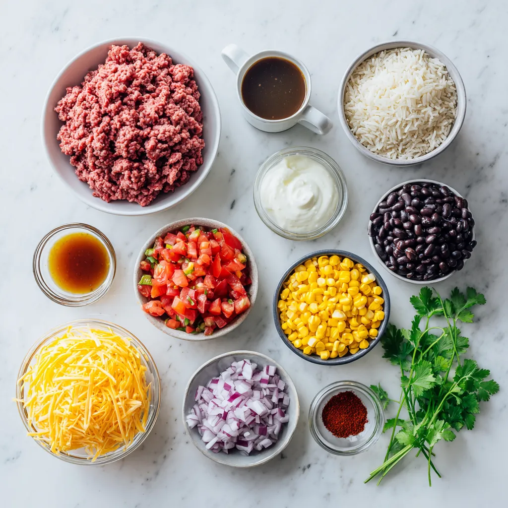 The heart of any great casserole lies in its ingredients. For my Cheesy Ground Beef Rice Casserole, I use simple yet flavorful items. First, I start with ground beef. It gives the dish a rich taste and fills you up. Next, I add uncooked long-grain rice. This rice absorbs all the flavors as it cooks.