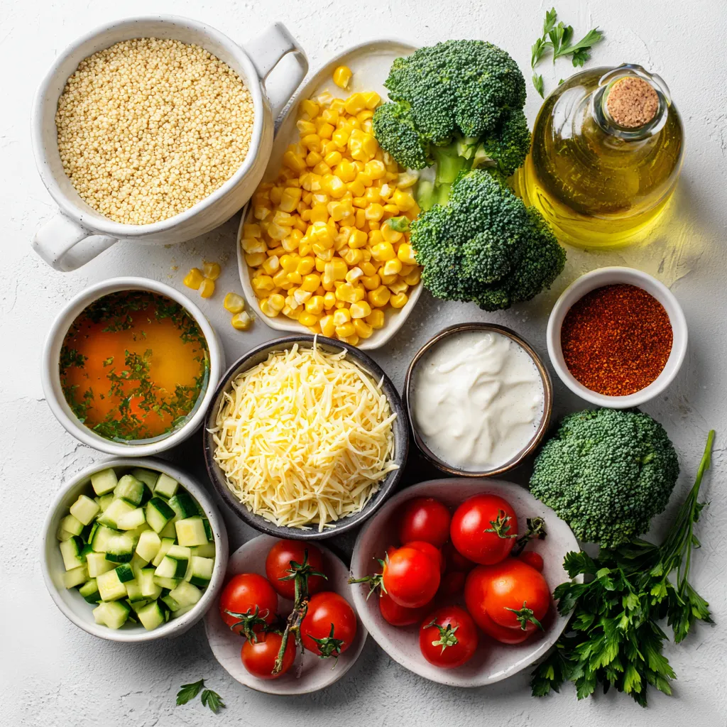 Start by preheating your oven to 375°F (190°C). This step is key. While the oven heats, gather your ingredients. You will need quinoa, broth, veggies, cheese, and spices. Rinse one cup of quinoa under cold water. This helps remove any bitterness.
