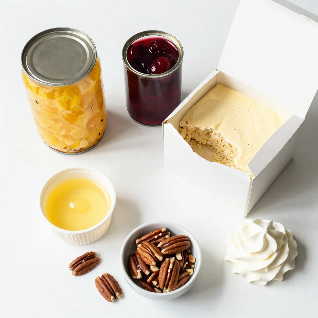 To make Cherry Pineapple Dump Cake, you need a few simple ingredients. Here is the full list: