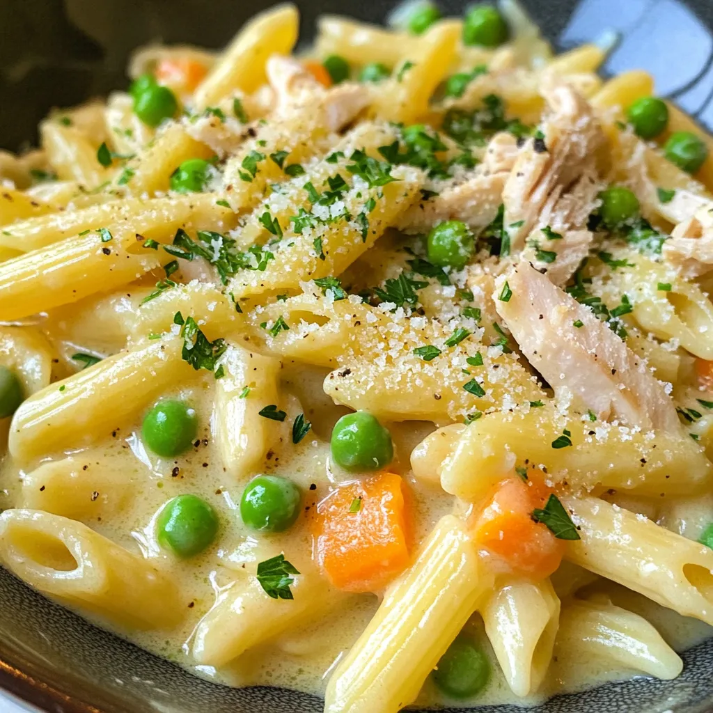 A creamy and comforting pasta dish inspired by classic chicken pot pie.