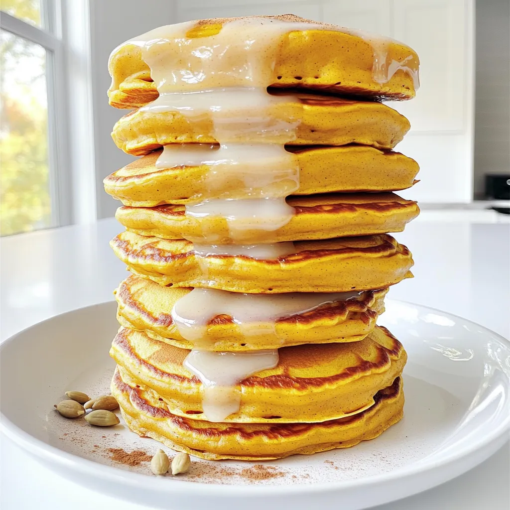 For a beautiful dish, stack the pancakes high on a plate. Drizzle the icing over the top for a sweet touch. Add a sprinkle of cinnamon for extra flavor. You can also garnish with pumpkin seeds for a nice crunch. For the best taste, serve with warm maple syrup on the side. This adds a wonderful sweetness that pairs well with the pumpkin flavor. Enjoy your tasty fall treat!