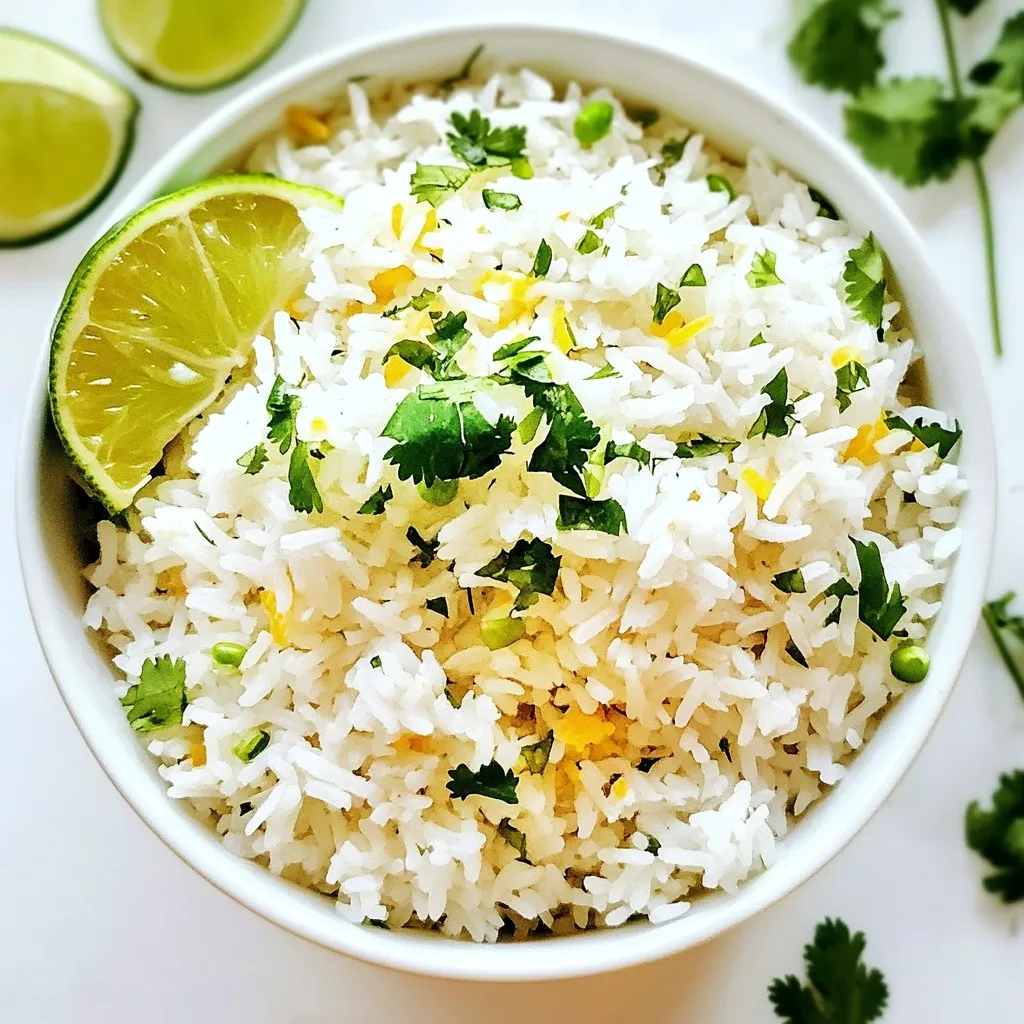 To make coconut lime rice, gather these simple ingredients: - 1 cup jasmine rice - 1 cup coconut milk - 1 cup vegetable broth or water - 1 tablespoon lime juice - Zest of 1 lime - 1 tablespoon sugar (optional, for sweetness) - 1/2 teaspoon salt - Fresh cilantro, chopped (for garnish) - Lime wedges (for serving) If you need to swap some items, here are good options: - Use basmati rice instead of jasmine rice for a different flavor. - Replace coconut milk with almond milk for a lighter taste. - Water can work instead of vegetable broth if you want a simpler base. - For a less sweet dish, skip the sugar. Feel free to get creative with these add-ins: - Add diced bell peppers for color and crunch. - Mix in peas for a pop of green and sweetness. - For spice, toss in a pinch of red pepper flakes. - You can also stir in some toasted coconut for extra texture. This coconut lime rice pairs well with many dishes. Enjoy experimenting with your own twists! {{ingredient_image_1}} Start by rinsing the jasmine rice. Place the rice in a fine mesh strainer. Run cold water over it until the water runs clear. This step washes away excess starch. It helps the rice stay fluffy and not sticky. In a medium saucepan, combine the rinsed rice with coconut milk, vegetable broth, lime juice, lime zest, and salt. If you like a bit of sweetness, add sugar. Stir until everything is mixed well. Now, bring the mixture to a boil over medium-high heat. As soon as it boils, reduce the heat to low. Cover the pot and let it simmer for about 15 to 20 minutes. The rice will absorb the liquid and become tender. After cooking, remove the pot from heat. Let it sit covered for another 5 to 10 minutes. This resting time helps the rice fluff up nicely. Once the rice has rested, use a fork to fluff it gently. This helps separate the grains. Serve the coconut lime rice warm. Garnish with fresh cilantro on top and add lime wedges on the side for extra flavor. This dish pairs well with grilled meats or spicy dishes. Enjoy the bright and zesty taste! To get fluffy rice, always rinse jasmine rice first. This step helps remove excess starch. Rinse until the water runs clear. This helps keep your rice from clumping together. After cooking, let the rice sit covered for 5-10 minutes. This extra time allows it to steam and become light. Add lime zest to give a bright flavor. If you like things sweeter, try adding sugar. A tablespoon works well, but you can skip it if you want. Fresh cilantro makes a great garnish. It adds color and a fresh taste. If you love heat, add chopped jalapeños for a spicy kick. Don’t skip rinsing the rice. It can lead to sticky rice. Also, make sure to measure liquids carefully. Too much liquid can make the rice mushy. Avoid lifting the lid while cooking. Each time you lift it, steam escapes, and this can affect cooking time. Lastly, always fluff the rice gently with a fork. This keeps it light and fluffy. Pro Tips Rinse the Rice: Rinsing jasmine rice helps to remove excess starch, resulting in fluffier rice that doesn't stick together. Use Full-Fat Coconut Milk: For a richer and creamier texture, opt for full-fat coconut milk instead of light versions. Adjust Sweetness: The sugar is optional; adjust according to your taste preference for a balanced flavor between sweet and tangy. Garnish Generously: Fresh cilantro and lime wedges not only enhance presentation but also add a fresh burst of flavor to the dish. {{image_2}} You can use different types of rice for coconut lime rice. Jasmine rice is the best choice. It has a nice floral aroma and a soft texture. If you want a nutty flavor, try basmati rice. You can also use long-grain white rice. It cooks well and has a light texture. For a healthier option, use brown rice. Just remember, brown rice takes longer to cook. This dish is naturally vegan since it uses coconut milk. If you want to make it gluten-free, ensure your broth is gluten-free. You can also swap the sugar for maple syrup or agave nectar for a different sweet taste. For a low-carb option, use cauliflower rice. It absorbs flavors well and gives a nice base for the dish. Coconut lime rice pairs well with many proteins. Try it with grilled chicken or shrimp for a tasty meal. It also goes great with tofu for a vegan option. Add some sautéed vegetables like bell peppers or snap peas for extra color and nutrition. Serve it with lime wedges for a fresh kick. This dish is versatile and can complete any meal. To store Coconut Lime Rice, let it cool first. Place it in an airtight container. Make sure to keep it in the fridge. It will stay fresh for about three to four days. If you want to keep it longer, freezing is a great option. When you reheat coconut lime rice, use a microwave or a stovetop. For the microwave, put the rice in a bowl. Add a splash of water or broth. Heat for about 1-2 minutes, stirring halfway. On the stovetop, add the rice to a pan. Add a little water and heat it over low heat. Stir until warm. To freeze coconut lime rice, place the cooled rice in a freezer bag. Squeeze out as much air as you can and seal it. Write the date on the bag. The rice can last up to three months in the freezer. When you're ready to eat it, thaw it overnight in the fridge. Then, reheat it as mentioned above. Coconut lime rice is a tasty side dish. It combines jasmine rice with coconut milk and lime. The rice has a creamy texture and a bright flavor. You cook it with lime juice and zest to add a zesty touch. It’s great with many meals. I love serving it with grilled chicken or fish. Yes, you can use brown rice instead of jasmine rice. Brown rice takes longer to cook. You will need to adjust the cooking time. Use 1 and a half cups of liquid for each cup of brown rice. Keep cooking until the rice is tender and water is absorbed. The flavor will be different, but still delicious! To make coconut lime rice less sweet, skip the sugar. The coconut milk provides some natural sweetness. You can also add a bit more lime jui