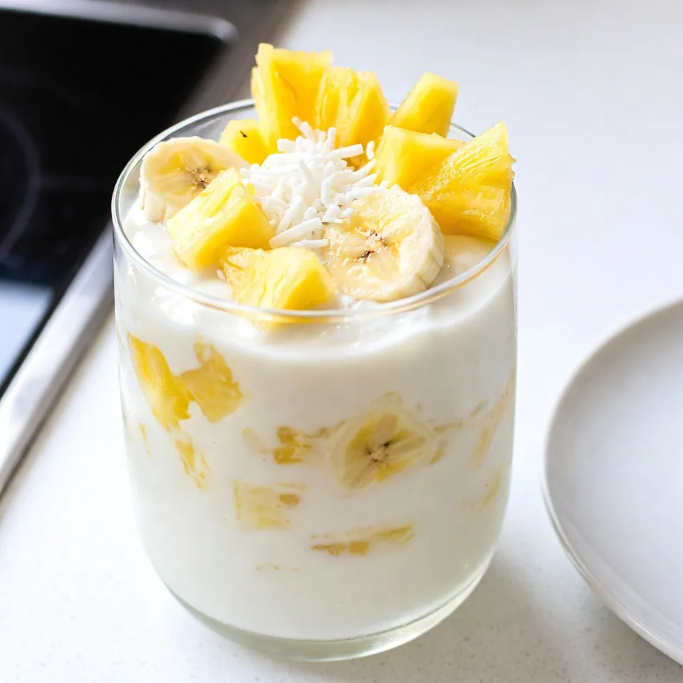 A refreshing and creamy smoothie made with pineapple, coconut, and banana.