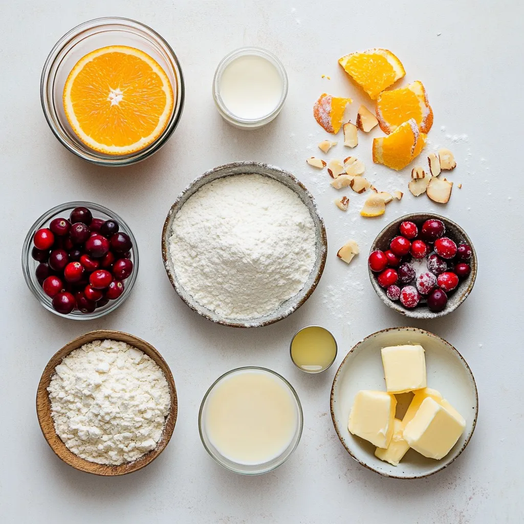These ingredients create the perfect blend for cranberry orange scones. Each one plays a key role. The flour forms the base, while sugar adds sweetness. Baking powder and baking soda help the scones rise, making them light and fluffy.