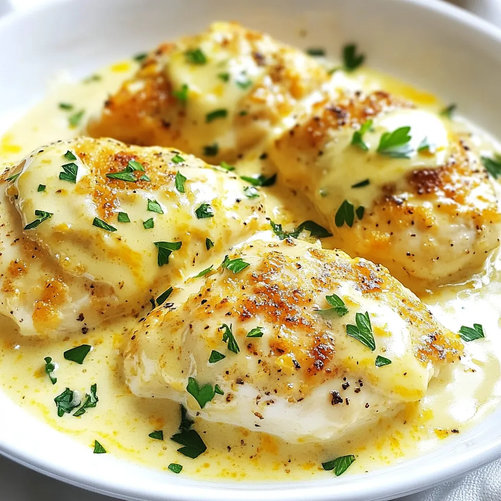 - 4 boneless, skinless chicken breasts - 1 cup shredded Asiago cheese - 1 cup heavy cream - 1 tablespoon olive oil - 3 cloves garlic, minced - 1 teaspoon Italian seasoning - Salt and pepper to taste - Fresh parsley, chopped (for garnish) In this recipe, we focus on simple yet rich flavors. The main ingredients are chicken, Asiago cheese, and heavy cream. These three work together to create a creamy, savory dish. The chicken breasts provide protein, while the Asiago cheese adds a sharp, nutty taste. Heavy cream brings a smooth texture to the dish. You will also need olive oil, minced garlic, and Italian seasoning. Olive oil helps to sear the chicken perfectly. Garlic gives an aromatic touch and a burst of flavor. Italian seasoning adds depth and warmth. For seasoning, use salt and pepper to enhance the taste. Fresh parsley makes a lovely garnish. It adds a pop of color and a hint of freshness. This dish is all about balance, and each ingredient plays a role. Enjoy the process of gathering these ingredients, as they form the base of a fantastic meal. {{ingredient_image_1}} 1. Preheat your oven to 375°F (190°C). This step is key for even cooking. 2. In a large skillet, heat 1 tablespoon of olive oil over medium heat. 3. Season 4 boneless, skinless chicken breasts with salt and pepper on both sides. 4. Add the chicken to the skillet. Sear for about 5-6 minutes on each side until golden brown. 5. Remove the chicken from the skillet and set it aside. 1. In the same skillet, add 3 cloves of minced garlic. Sauté for 1-2 minutes until fragrant. 2. Pour in 1 cup of heavy cream and stir in 1 teaspoon of Italian seasoning. 3. Bring the mixture to a gentle simmer. This helps the flavors blend. 4. Stir in 1 cup of shredded Asiago cheese. Mix until melted and smooth. 1. Return the chicken breasts to the skillet. Spoon the creamy sauce over them to coat well. 2. Transfer the skillet to the preheated oven. Bake for 20-25 minutes. 3. Check that the chicken is cooked through (internal temperature should reach 165°F or 75°C). 4. Once done, let the chicken rest for a few minutes before serving. Garnish with fresh chopped parsley for a nice touch. To get the best flavor, you need to sear the chicken well. Start with a hot skillet and add olive oil. Season your chicken breasts with salt and pepper. Place them in the skillet and don’t move them for 5-6 minutes. This lets a nice crust form. Flip the chicken and sear the other side until golden brown. This step locks in the juices and adds flavor. For the sauce, you want it to be creamy but not too thick. After you add the heavy cream, stir it gently. Let it simmer to blend the flavors. When you add the Asiago cheese, keep stirring until it melts into the sauce. If the sauce is too thick, add a splash of water or more cream to reach your desired consistency. Garnishing your Creamy Asiago Chicken makes it look fancy. Fresh parsley adds a pop of color and freshness. Just chop a little and sprinkle it on top before serving. For side dishes, I recommend serving it with garlic bread or a fresh salad. Roasted vegetables or creamy mashed potatoes pair well too. These sides make the meal feel complete and add yummy flavors. Pro Tips Perfectly Sear the Chicken: Make sure your skillet is hot enough before adding the chicken to achieve a golden brown crust. This locks in the juices and adds flavor. Use Fresh Garlic: Freshly minced garlic will provide a stronger and more aromatic flavor compared to pre-minced options, enhancing the overall taste of your sauce. Check the Sauce Consistency: If the sauce is too thick, you can add a splash of chicken broth or extra cream to achieve your desired consistency. Let It Rest: Allow the chicken to rest for a few minutes after baking. This helps redistribute the juices, making the chicken more tender and flavorful when served. {{image_2}} You can change the cheese in this recipe. Try using Parmesan or Gouda instead of Asiago. Each cheese gives a unique taste. If you want a lighter sauce, swap heavy cream for half-and-half or Greek yogurt. This keeps the dish creamy without the extra fat. Adding vegetables can boost the nutrition of your meal. Try mixing in spinach, mushrooms, or sun-dried tomatoes. These veggies add color and taste. If you like spice, sprinkle in red pepper flakes. This adds a nice kick to the creamy sauce. Adjust the amount based on your heat preference. To keep your Creamy Asiago Chicken fresh, follow these steps: - Cool down: Let the chicken cool to room temperature. - Use airtight containers: Place the chicken in airtight containers. This helps keep moisture in. - Refrigerate: Store the containers in the fridge. This is best if you eat the leftovers within 3-4 days. You can also freeze the chicken for longer storage: - Wrap tightly: Use plastic wrap or aluminum foil to wrap the chicken well. - Use freezer bags: Place the wrapped chicken in a freezer bag. Squeeze out as much air as possible. - Label and date: Write the date on the bag. This helps you track how long it’s been frozen. Frozen Creamy Asiago Chicken can last for about 2-3 months. To reheat your Creamy Asiago Chicken, keep these tips in mind: - Oven method: Preheat your oven to 350°F (175°C). Place the chicken in a baking dish. Cover with foil to prevent drying out. Heat for 20-25 minutes until warmed through. - Stovetop method: Heat a skillet over medium-low heat. Add a splash of cream to the skillet. Place the chicken in the skillet and cover. Cook for about 10 minutes until warm. To revive the sauce consistency: - Add a splash of cream: If the sauce thickens too much, add a little cream while reheating. - Stir gently: Mix the sauce as you heat to keep it creamy and smooth. Following these steps will help you enjoy your Creamy Asiago Chicken again! How do you know when chicken is fully cooked? You can check if chicken is fully cooked by using a meat thermometer. The internal temperature should reach 165°F (75°C). If you don't have a thermome