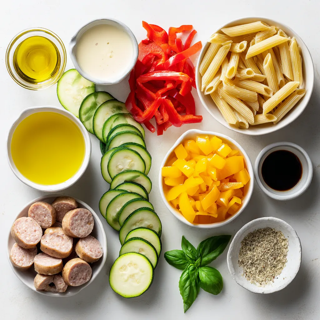 Here’s what you need for the creamy one-pot chicken sausage pasta. Each ingredient plays a key role in making the dish tasty and satisfying.
