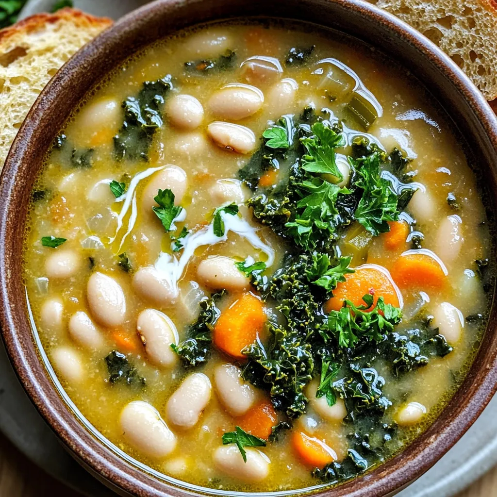This soup is easy to make with simple, fresh ingredients. You start with white beans, either cannellini or navy. They give the soup a creamy texture and are full of protein. Next, you need a medium onion. Dice it up to add flavor. Garlic plays a big role too. Use three cloves, minced, for a tasty kick.