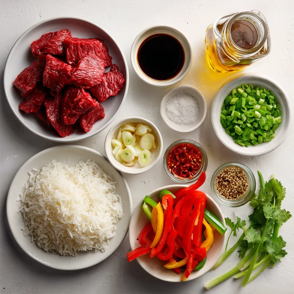 To make Crispy Chilli Beef Rice, you need a few key ingredients. Each one adds flavor and texture to the dish.