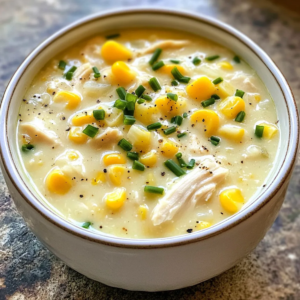 A hearty and creamy chowder made with chicken, corn, and potatoes, perfect for a comforting meal.