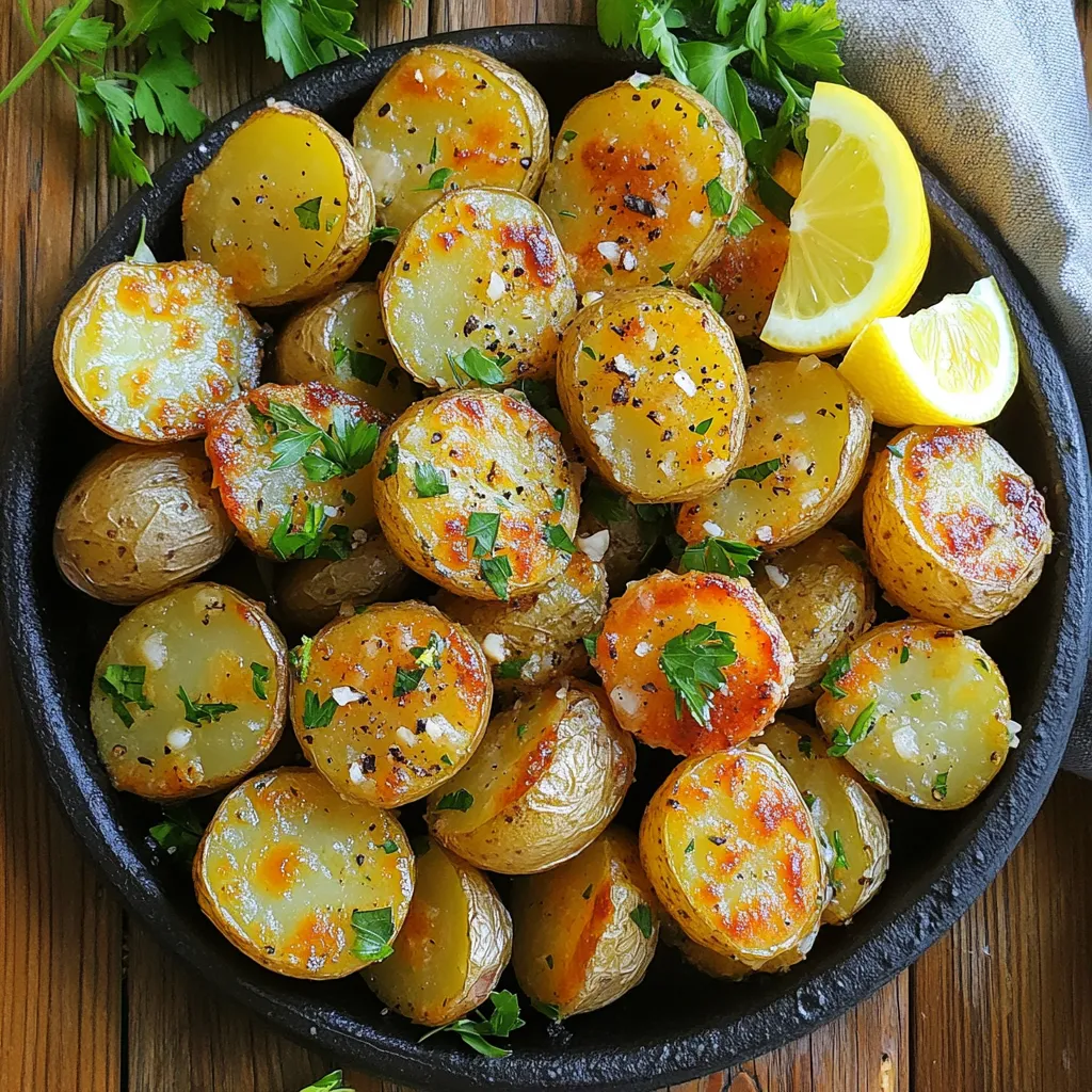 Once you take the potatoes out, let them cool for a few minutes. Then, sprinkle fresh parsley on top for color and taste. Serve with lemon wedges on the side. The lemon adds a nice zing and brightens the dish.