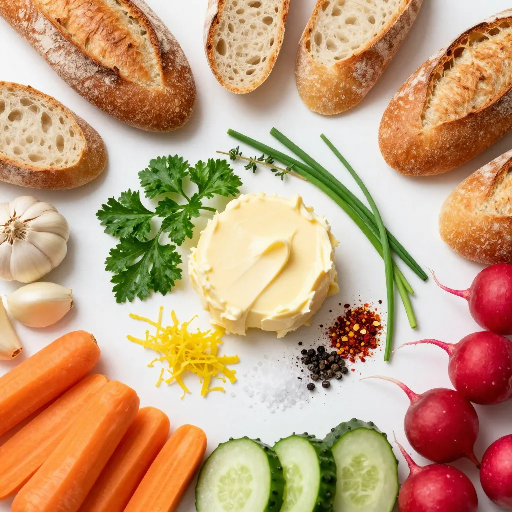 A delicious and easy-to-make garlic herb butter served with assorted breads and fresh vegetables for dipping.