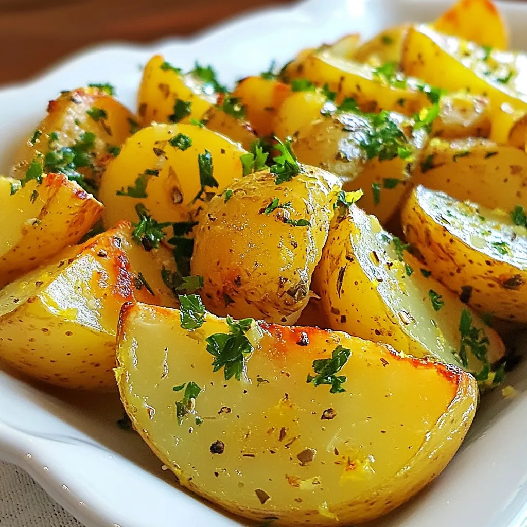 A flavorful dish of Yukon gold potatoes roasted with lemon, garlic, and herbs.