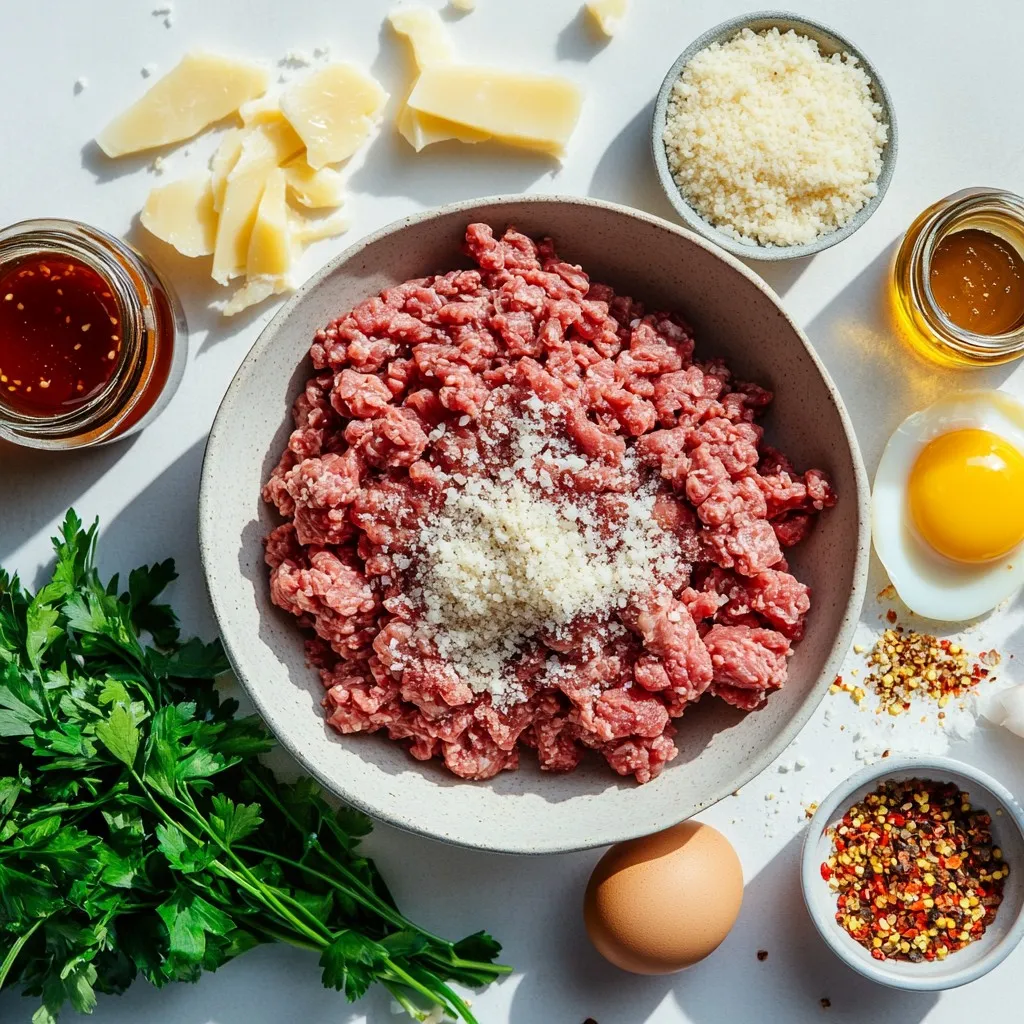 These main ingredients provide a great base. The meat adds protein, while breadcrumbs keep the meatballs tender. The cheese gives a nice flavor, and the garlic adds a punch. The egg binds everything together.