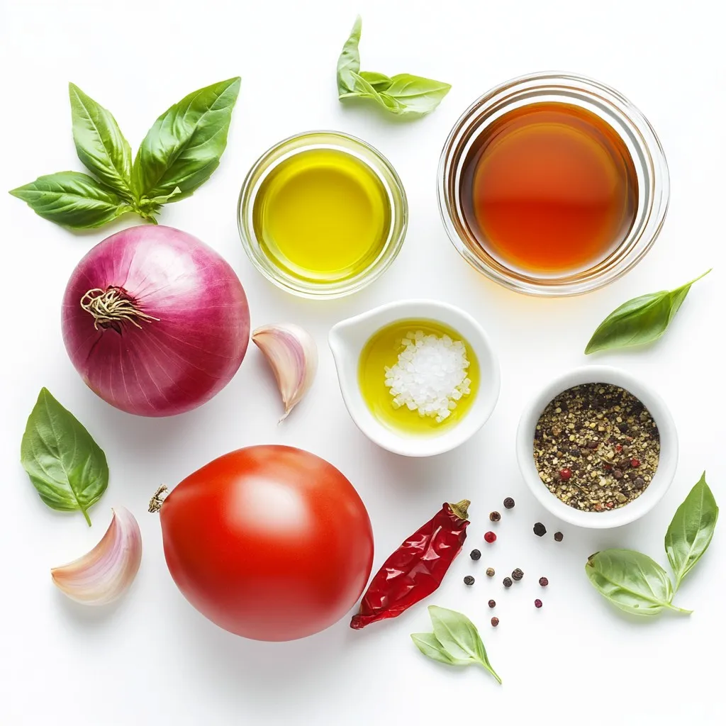 Start by gathering all your ingredients. You need olive oil, onion, garlic, diced tomatoes, vegetable broth, dried oregano, sugar, salt, pepper, fresh basil, and cream. Chop the onion and mince the garlic. This makes the cooking process easier.