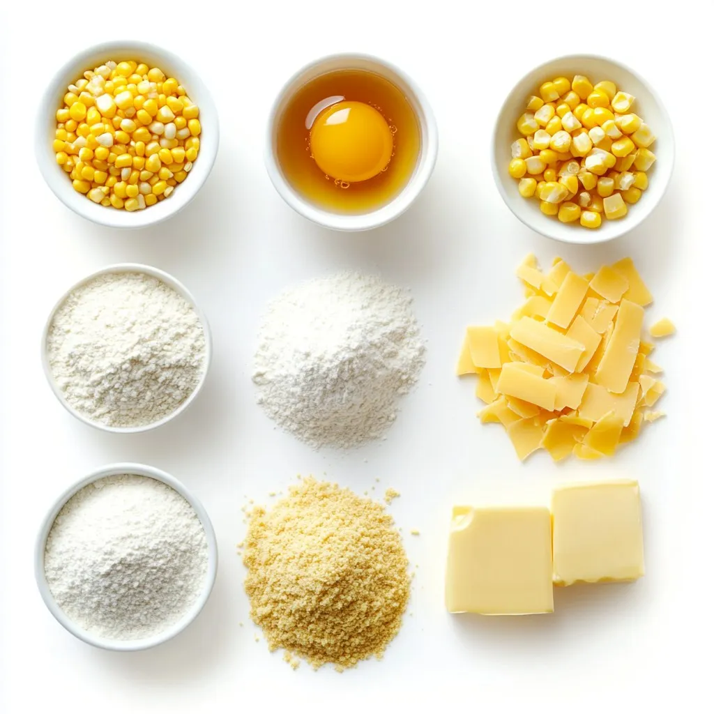 To start, gather your ingredients. You need cornmeal, flour, baking powder, baking soda, salt, buttermilk, eggs, honey, melted butter, cheddar cheese, and jalapeños. If you want a sweet touch, add corn kernels.