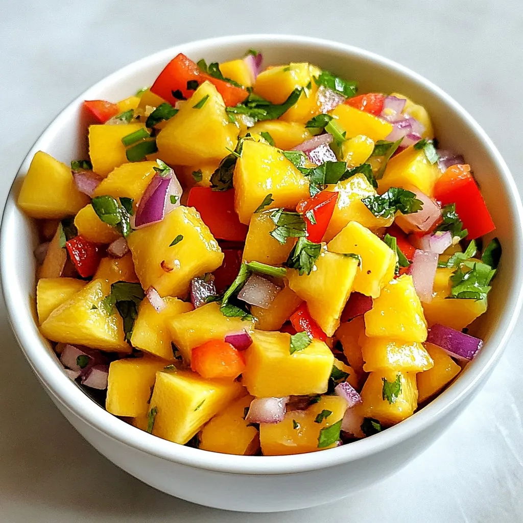 Red onion offers a sharp taste, while red bell pepper adds crunch. Garlic gives depth to the mix. Fresh cilantro adds a refreshing touch. The lime juice brightens everything up. Salt helps to enhance all the flavors. Together, these ingredients create a delightful salsa.