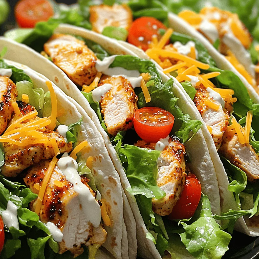 While the chicken cooks, prepare your tortillas. You can warm them in another skillet or microwave for a few seconds. This makes them soft and easy to handle. Now, lay out each tortilla. Start with a handful of mixed greens. Next, add some halved cherry tomatoes. Then, place your spicy garlic chicken on top. Sprinkle with shredded cheese. Drizzle ranch dressing or tzatziki sauce over everything.