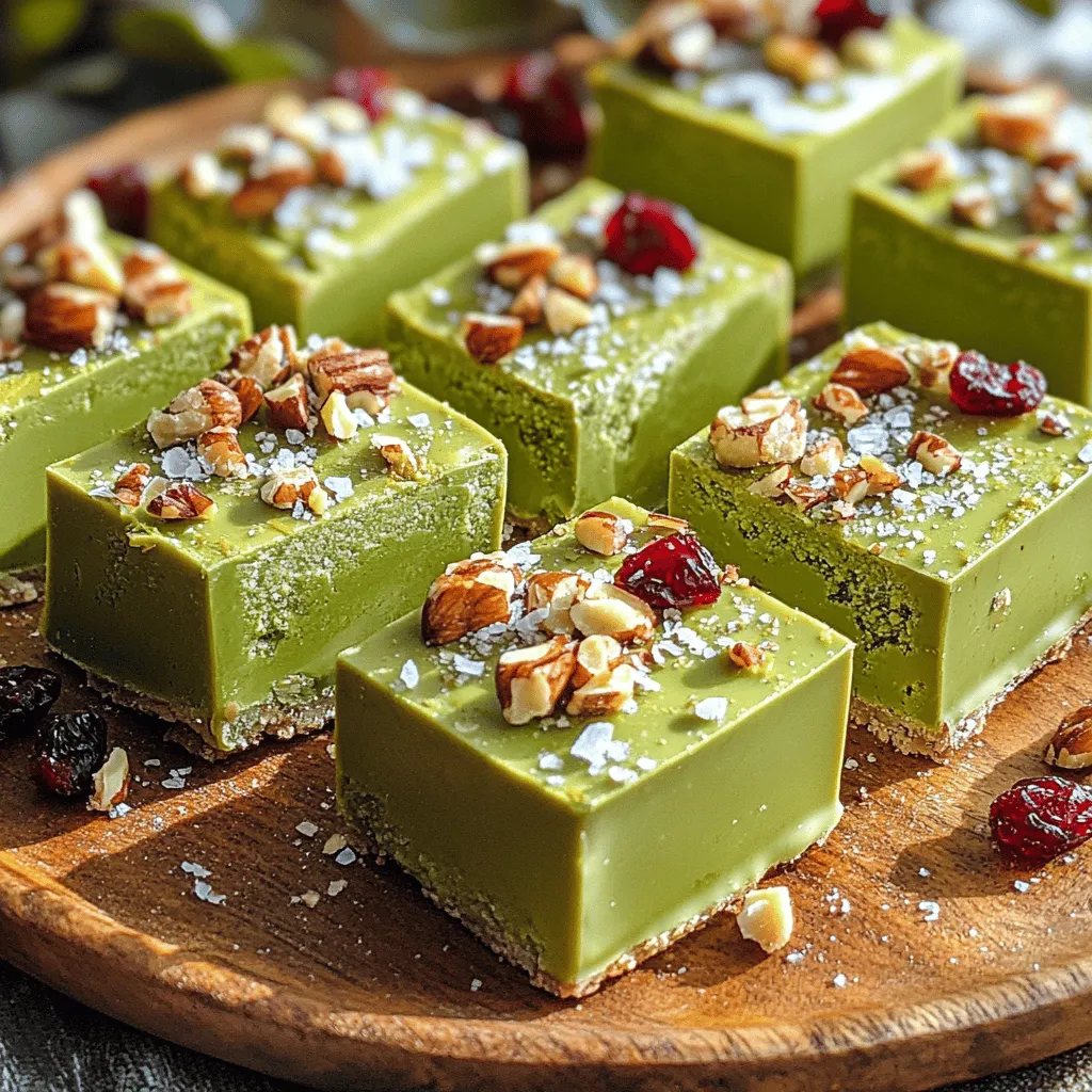 Presentation makes your bars look great. Cut them into even squares or rectangles. Place them on a nice platter to impress your guests. For a pop of color, sprinkle extra matcha on top. You can also add whole nuts or berries for a fun look. Serve with fresh fruit or herbal tea for a complete snack. These tips make your matcha bars not only tasty but also beautiful.