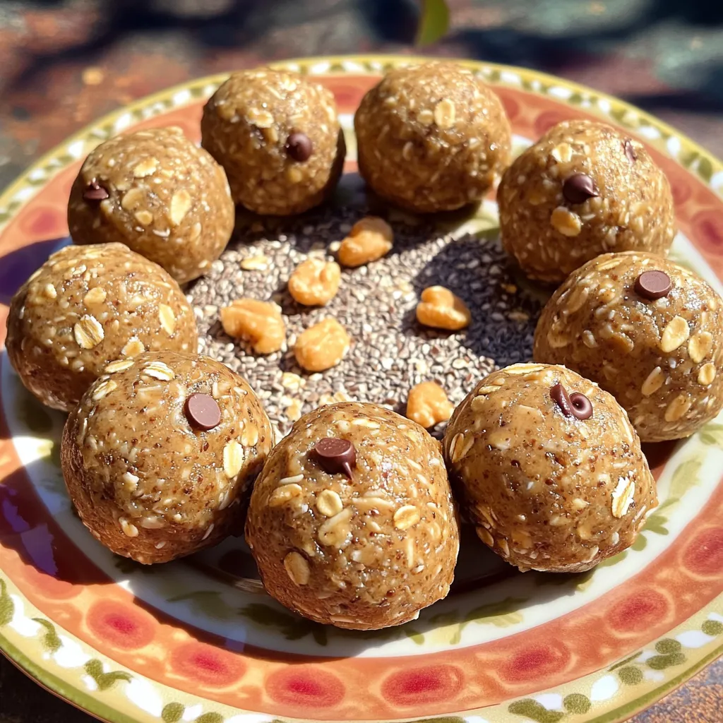 These ingredients bring together great taste and healthy energy. Rolled oats give you fiber. Peanut butter adds protein and healthy fat. Honey or maple syrup offers natural sweetness. Vanilla protein powder boosts the protein level even more. Ground flaxseed contributes omega-3 fatty acids. Mini chocolate chips add a fun touch, if you like. Cinnamon brings warmth and flavor, while salt enhances everything.