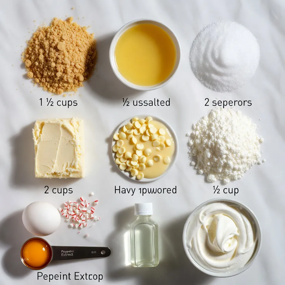 To make a delicious peppermint white chocolate cheesecake, gather these ingredients: