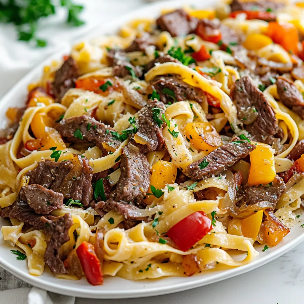 Keyword beef, cheesesteak, comfort food, pasta