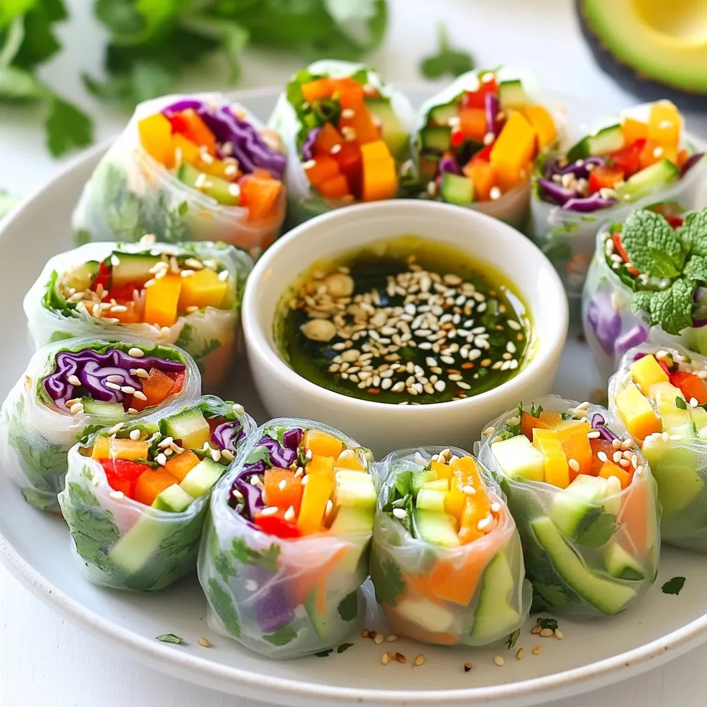 Rainbow veggie spring rolls are not just colorful; they are also healthy. Each roll is packed with vitamins and minerals. The fresh veggies provide fiber and antioxidants. Rice paper is low in calories and gluten-free. Avocado gives healthy fats, while herbs add flavor without extra calories. A serving of these rolls offers a great balance of nutrients. Enjoying them with dipping sauce adds flavor without overwhelming the health benefits.