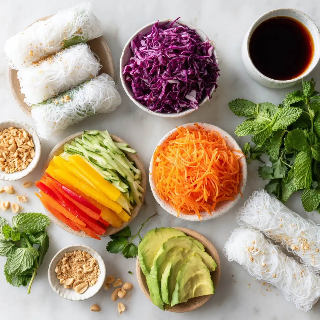 Making these spring rolls vegan is simple. Just skip any animal products and stick to veggies and fruits. For gluten-free options, ensure your rice papers are certified gluten-free. Most rice papers are safe, but always check the label. You can use tamari as a gluten-free soy sauce alternative in your dipping sauce.