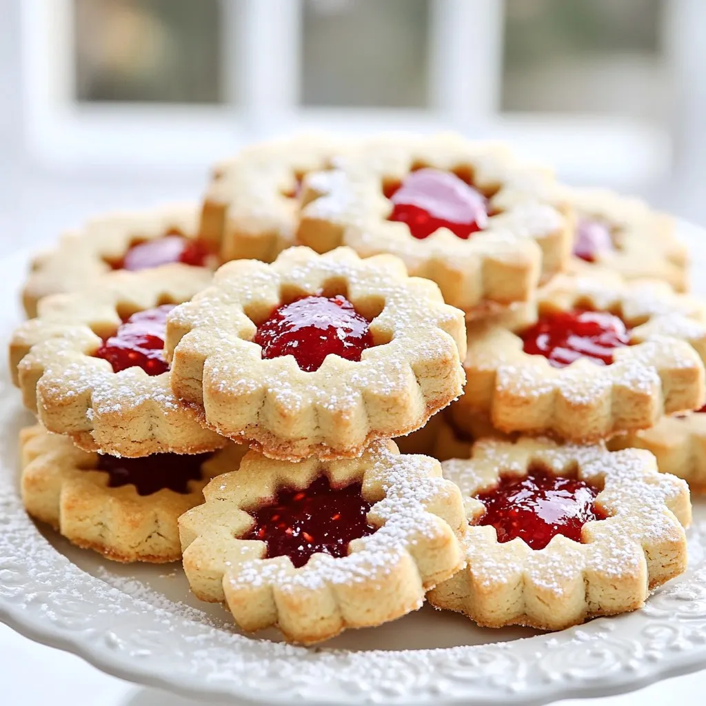 Dusting with powdered sugar adds a nice touch. Use a fine sieve to sprinkle it on top. This creates a lovely, snowy look. When layering your cookies, spread about 1 teaspoon of raspberry jam on the solid cookies. Then, gently place the cutout cookies on top. This makes each cookie look pretty and delicious.