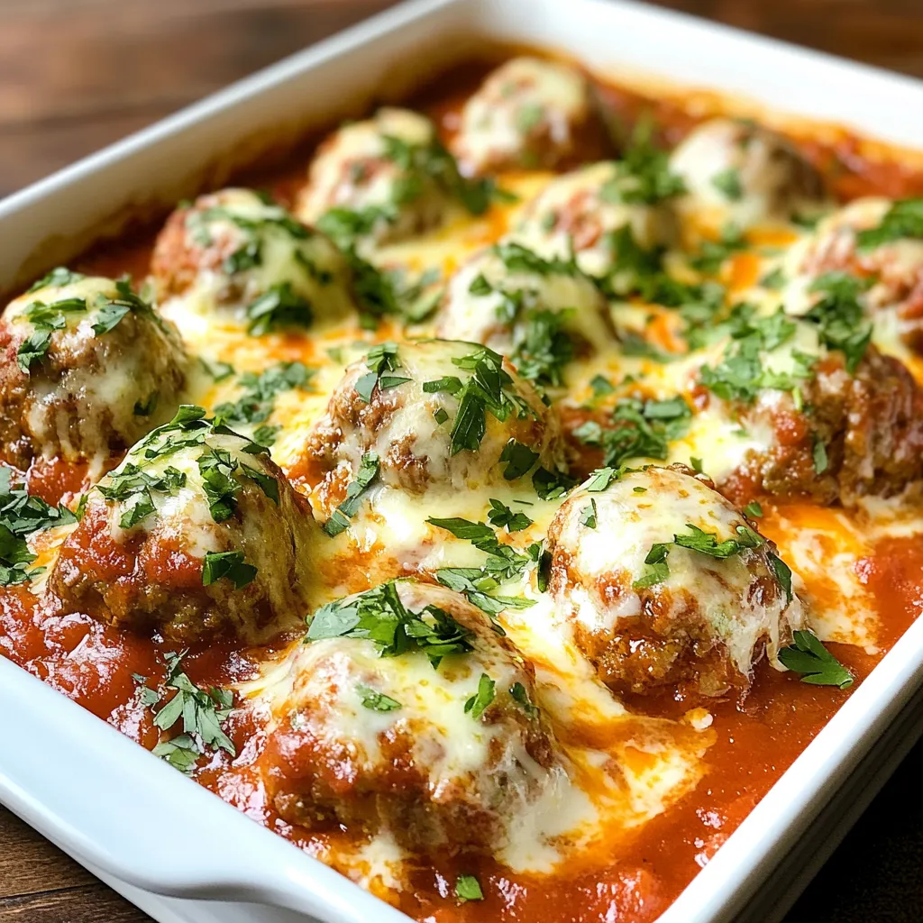 - 1 cup ricotta cheese - 1 pound ground beef or ground turkey - 1/2 cup breadcrumbs The main ingredients make these meatballs creamy and hearty. Ricotta adds moisture and flavor. Ground beef or turkey gives protein and texture. Breadcrumbs help bind the meatballs, keeping them from falling apart. - 1/4 cup grated Parmesan cheese - 1 large egg - 2 cloves garlic, minced Parmesan cheese adds a tasty kick. The egg helps hold everything together. Garlic brings a lovely aroma and depth to the dish. - 1 teaspoon dried oregano - 1 teaspoon fresh basil, chopped - 1 jar (24 oz) marinara sauce Dried oregano and fresh basil give a classic Italian flavor. Marinara sauce adds richness and moisture. You can use store-bought or homemade sauce, depending on your time. These ingredients come together for a delicious meal. Each one plays a vital role in flavor and texture. I love how they create a balanced dish that everyone enjoys. {{ingredient_image_1}} In a large bowl, combine the main ingredients. You will need 1 cup of ricotta cheese, 1 pound of ground beef or turkey, 1/2 cup of breadcrumbs, and 1/4 cup of grated Parmesan cheese. Next, add 1 large egg, 2 minced cloves of garlic, 1 teaspoon of dried oregano, and 1 teaspoon of fresh basil. Don’t forget to add 1/2 teaspoon of salt and 1/4 teaspoon of black pepper. Mix everything together until it is well combined. You want a smooth and even mixture that holds together well. Now it’s time to form the meatballs. Take a small amount of the mixture and roll it into a ball about 1.5 inches in size. Aim for even shapes to help them cook uniformly. You can expect to make around 20 meatballs with this recipe. When handling the mixture, wet your hands with water. This helps prevent sticking. Keep your hands gentle to avoid compressing the meat too much. To cook the meatballs, start by heating a skillet over medium heat. Add a drizzle of olive oil once the skillet is hot. Place the meatballs in the skillet in batches. Make sure not to overcrowd them. Brown the meatballs on all sides for about 5-6 minutes. After browning, transfer them to a baking dish. Pour half of a 24-ounce jar of marinara sauce on the bottom of the dish. Carefully place the meatballs on top, then cover them with the remaining sauce. Preheat your oven to 375°F (190°C). Cover the baking dish with aluminum foil and bake for 20 minutes. After this, remove the foil and bake for another 10 minutes. The meatballs should reach an internal temperature of 160°F (70°C). Once cooked, let them cool for a few minutes before serving. Add fresh parsley on top for garnish, and enjoy your delicious ricotta meatballs! Using ricotta cheese gives meatballs a creamy texture. It adds moisture and richness. When you mix ricotta with ground beef or turkey, it makes the meatballs soft. The key is balancing the moisture from the ricotta with breadcrumbs. Breadcrumbs absorb extra liquid. This helps keep the meatballs from being too wet or too dry. Use about half a cup of breadcrumbs for one cup of ricotta. This balance makes a big difference. To brown meatballs well, heat your skillet to medium. If it’s too hot, the outside burns before the inside cooks. Use olive oil to coat the skillet. This helps the meatballs brown evenly. When you bake the meatballs, cover the dish with foil for the first 20 minutes. This keeps them moist. After that, uncover them and bake for another 10 minutes. This helps brown the top and makes it look nice. Fresh parsley adds color and flavor. You can chop a handful and sprinkle it on top. It brightens the dish. Other garnishes include grated Parmesan or a drizzle of olive oil. You can also add a pinch of red pepper flakes for some heat. These simple touches make your meatballs look and taste even better. Pro Tips Keep It Moist: Adding ricotta cheese not only enhances flavor but also keeps the meatballs moist. You can also add a splash of milk to the mixture for extra tenderness. Perfectly Sized: Aim for uniform meatballs around 1.5 inches in diameter. This ensures even cooking and browning, making for a more appealing presentation. Fresh Herbs Matter: Using fresh basil instead of dried can elevate the flavor significantly. If you can, try to incorporate fresh herbs whenever possible for the best taste. Let Them Rest: After baking, let the meatballs rest for a few minutes before serving. This allows the juices to redistribute, making them even more flavorful. {{image_2}} You can swap ground beef for turkey or chicken. Ground turkey makes the meatballs lighter. It has a mild flavor and is a healthy option. Ground chicken is another choice. It is leaner than beef and adds a nice texture. If you want a vegetarian option, try using plant-based meat. There are many brands available now. These meats mimic the taste and texture of beef. You can still follow the same recipe and enjoy delicious meatballs. To enhance flavor, add different herbs or spices. Consider using thyme or rosemary for a fresh twist. You can also try crushed red pepper for a kick. Each herb adds a unique taste to the meatballs. Incorporating cheese can also boost flavor. You can mix in mozzarella or feta cheese. These cheeses melt beautifully and add creaminess. They will make your meatballs even more indulgent. You can use different types of sauces for your meatballs. Instead of marinara, try a creamy Alfredo sauce. A BBQ sauce gives a sweet and smoky flavor. Each sauce creates a different experience. Experimenting with homemade marinara can be fun too. You can adjust the spices to match your taste. Adding fresh tomatoes or herbs can enhance the sauce's flavor. Making your own sauce allows you to customize every bite. To keep your ricotta meatballs fresh, store them in an airtight container. This helps prevent them from drying out. Place the meatballs in the fridge within two hours of cooking. They will last for about three to four days. When ready to eat, simply reheat them in a skillet or microwave. You can freeze ricott