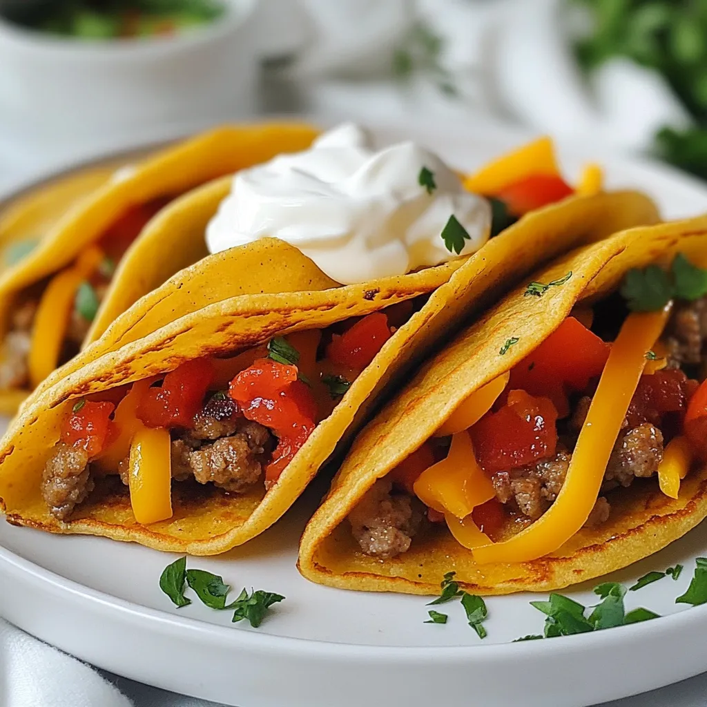 - 1 cup all-purpose flour - 1 cup buttermilk (or milk with 1 tablespoon lemon juice added) - 1 large egg - 1 teaspoon baking powder - 1/2 teaspoon baking soda - 1/2 teaspoon salt - 1/2 cup shredded cheese (cheddar or your choice) - 1/2 cup cooked crumbled sausage (or plant-based substitute) - 1/2 cup chopped bell peppers (any color) - 1/4 cup finely chopped green onions - Olive oil or butter for cooking - Sour cream and salsa for serving The main ingredients form the base of our savory pancake tacos. The flour gives structure, while buttermilk adds a nice tang. Eggs bind the mix together and help it rise. Baking powder and baking soda create fluffiness. Salt enhances all the flavors. Next, we have our flavorful add-ins. Shredded cheese brings creaminess and richness. Cooked crumbled sausage adds heartiness, but you can swap it for a plant-based option. Bell peppers add color and crunch, while green onions give a fresh bite. For cooking, you need olive oil or butter. Both create a nice, crispy edge on the pancakes. Sour cream and salsa serve as tasty dips, adding a creamy and zesty touch. This combination makes each bite a delightful experience. {{ingredient_image_1}} Start by gathering your mixing bowl. In this bowl, whisk together: - 1 cup all-purpose flour - 1 teaspoon baking powder - 1/2 teaspoon baking soda - 1/2 teaspoon salt Once mixed, add the wet ingredients: - 1 cup buttermilk (or milk with 1 tablespoon lemon juice) - 1 large egg Whisk until the batter is smooth. Now, stir in: - 1/2 cup shredded cheese - 1/2 cup cooked crumbled sausage - 1/2 cup chopped bell peppers - 1/4 cup finely chopped green onions Mix gently until everything is well combined. Next, heat your non-stick skillet over medium heat. Add a small amount of olive oil or butter to grease the pan. Once hot, pour about 1/4 cup of batter onto the skillet for each pancake taco. Use the back of a spatula to flatten it slightly. Cook for 2-3 minutes. Look for bubbles forming on the surface. When the edges look set, it's time to flip the pancake. Cook for another 1-2 minutes until golden brown. Repeat this step until all the batter is used. Take a cooked pancake and fold it in half like a taco. Do this with each pancake. Serve them warm on a plate. Pair with sour cream and salsa for dipping. Enjoy each bite of this savory delight! For the best texture, make sure your batter is smooth. If it's too thick, add a splash of buttermilk. Aim for a consistency like a thick smoothie. Cook your pancakes on medium heat. This helps them cook evenly without burning. Spices can bring your pancakes to life. Try adding a pinch of paprika or garlic powder for extra zest. Fresh herbs like chopped parsley or cilantro also work great. For cheese, cheddar is a classic choice, but feel free to mix it up. You can swap sausage for crumbled tempeh or black beans for a tasty plant-based option. Presentation matters! Stack your pancake tacos neatly on a plate. A sprinkle of fresh herbs adds color and charm. You can also drizzle sour cream on top or serve it in a small bowl for dipping. A side of bright salsa will make the dish pop and look even more inviting. Pro Tips Use Fresh Ingredients: For the best flavor, use fresh vegetables and high-quality cheese. This will enhance the overall taste of your savory pancake tacos. Customize Your Fillings: Feel free to swap out the sausage and cheese for your favorite proteins or add-ins, such as diced tomatoes, spinach, or mushrooms to make it your own. Adjust the Cooking Temperature: If your pancakes are browning too quickly, reduce the heat slightly. A steady medium heat will ensure they cook evenly without burning. Perfect Pancake Size: Use a 1/4 cup measuring cup for consistent pancake sizes. This will help them cook evenly and make for easier folding. {{image_2}} You can easily make savory pancake tacos vegetarian. Start by using plant-based sausage instead of meat. This keeps the texture and taste similar. You can also add more veggies for extra flavor. Here are some great vegetable fillings: - Spinach - Mushrooms - Zucchini - Corn These options bring color and taste to your tacos. If you like some heat, try adding jalapeños or a splash of hot sauce. This will make your taco pancakes spicy and fun. For a sweet-savory mix, consider adding fruits like diced apples or pineapple. They balance the savory flavors beautifully. For a gluten-free option, swap all-purpose flour with almond flour or rice flour. You may need to adjust the liquid in the batter. Watch cooking time carefully. Gluten-free flours can cook differently. Enjoy your tasty, gluten-free pancake tacos! To store your savory pancake tacos, follow these steps: - Allow pancakes to cool completely. - Place them in an airtight container. - Store in the fridge for up to 3 days. Check for signs of spoilage. If they smell sour or look moldy, discard them. Reheat your pancakes using these methods: - Microwave: Place on a plate and cover with a damp paper towel. Heat for 30 seconds. - Skillet: Heat on low with a little oil for 1-2 minutes. To keep them fluffy, avoid high heat. Moisture helps retain the texture. You can freeze pancake tacos for later use. Here’s how: - Stack pancakes with parchment paper between them. - Place in a freezer bag or container. For quick meal prep, consider filling pancakes with your favorite ingredients ahead of time. These can be a fast meal option. Yes, you can use whole wheat flour or gluten-free flour. Each type gives a unique flavor and texture. Whole wheat adds nuttiness, while gluten-free flour makes the pancakes light. Make sure to adjust the liquid if needed. You can prepare the batter and store it in the fridge for up to 24 hours. Cook the pancakes right before serving for the best taste. You can also cook them ahead and freeze. Just reheat them in a skillet or microwave. A variety of toppings work well. Try fresh sour cream, zesty salsa, or avocado slices. You can also add fresh herbs like cilantro or parsley. F
