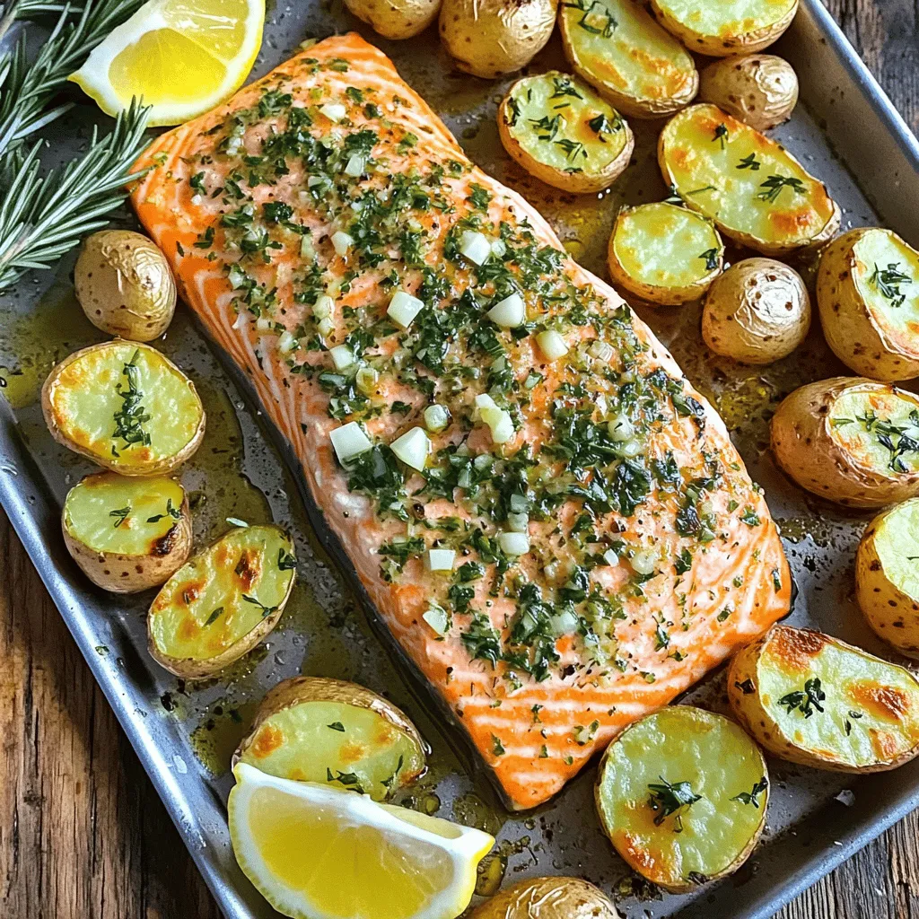Using fresh ingredients makes a big difference in taste. The salmon fillets bring rich flavor and healthy fats. Baby potatoes add a hearty touch and soak up the garlic and herbs. Garlic gives a nice punch, and olive oil helps everything roast evenly.