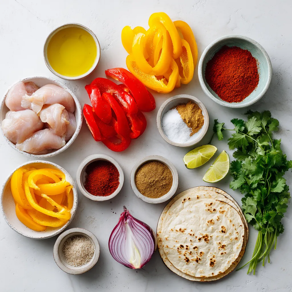 To make great fajitas, start with fresh chicken. I prefer boneless, skinless chicken thighs. They are tender and juicy after baking. Slice them into strips for even cooking. Next, add two bell peppers. I like the colors of red and yellow for a pop. Slice the onion to add sweetness. This mix of chicken and veggies makes the base of the dish.