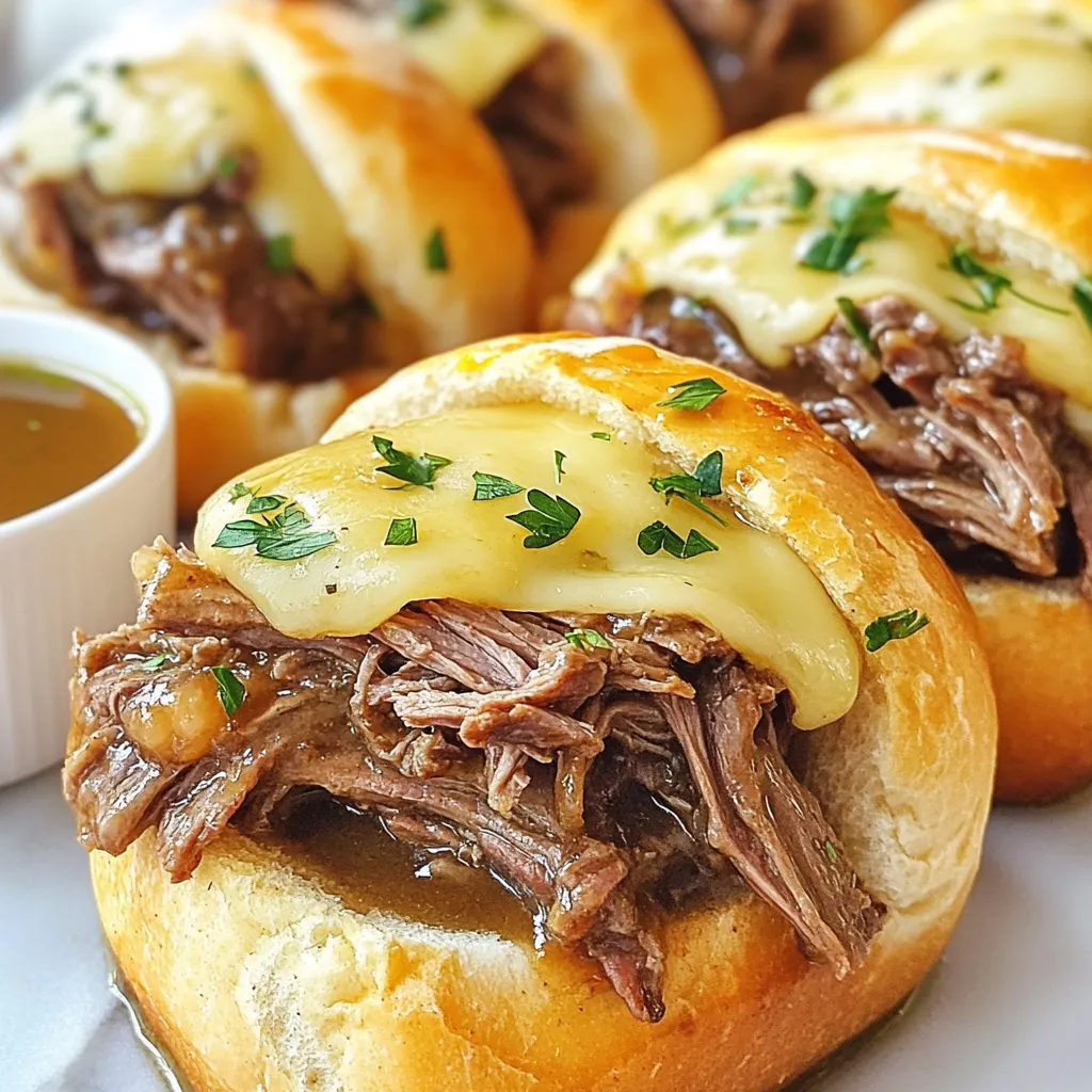 Serve the sandwiches on a wooden cutting board with small bowls of the beef broth for dipping. Garnish with chopped fresh parsley for a pop of color!