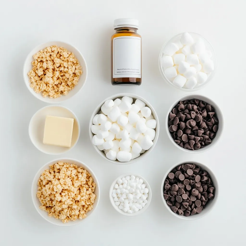 Each ingredient plays a key role. The Rice Krispies give the treats their crunch. Mini marshmallows provide gooey sweetness. Unsalted butter helps bind the mix and adds flavor. Graham cracker crumbs give that classic s’mores taste. Vanilla extract enhances the overall flavor. Chocolate chips add richness, while extra mini marshmallows on top make it extra fun.