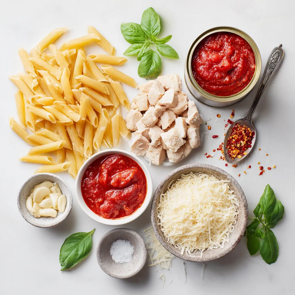 I love how simple yet flavorful the ingredients for Spicy Chicken Arrabbiata Pasta are. Each one plays a key role in creating that delicious taste. Here’s what you need: