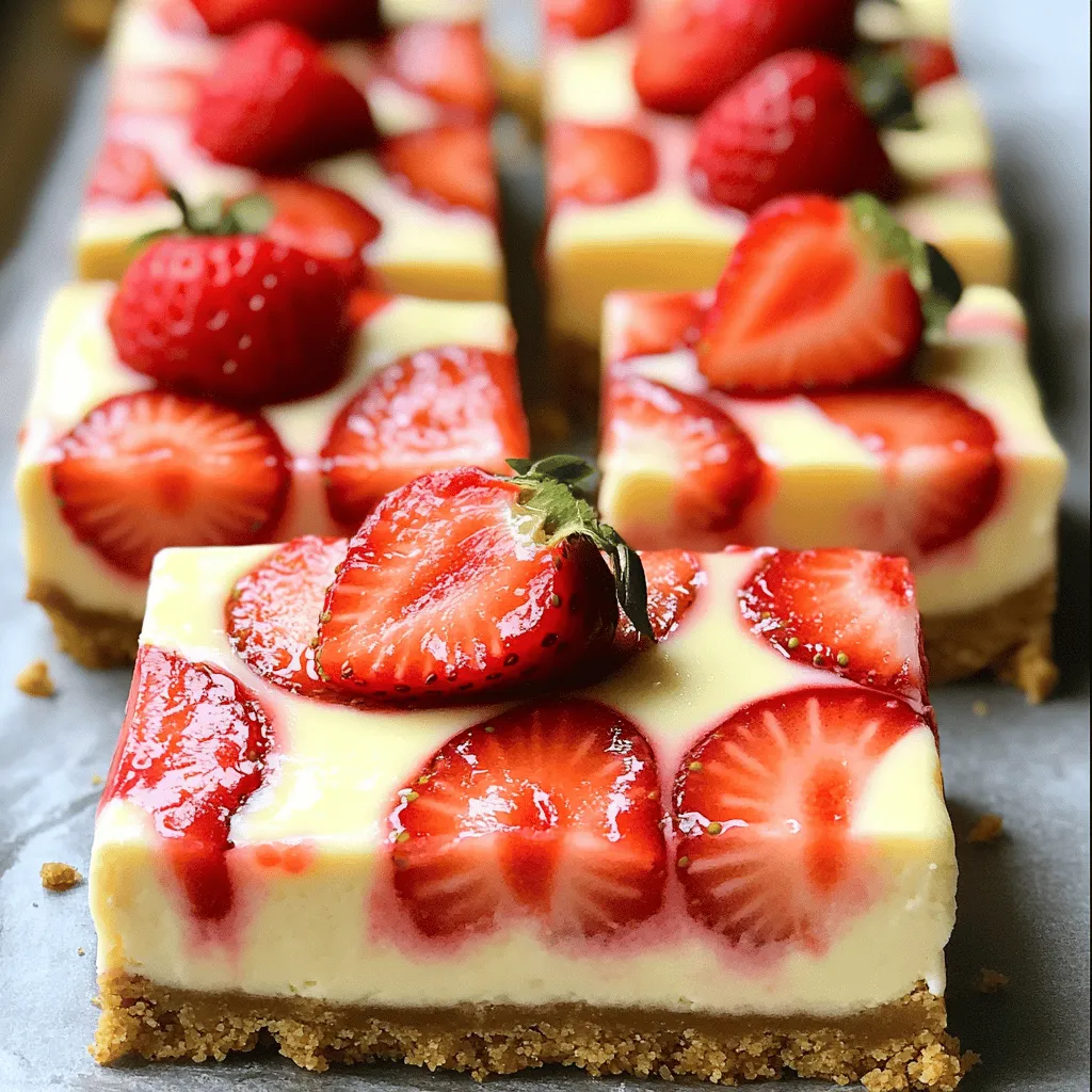Serve these bars cold for the best taste. Garnish with fresh strawberries for a pop of color. For extra flair, drizzle some strawberry puree on top. You can even sprinkle crushed graham crackers for added crunch. These little touches make your dessert look great and taste even better.