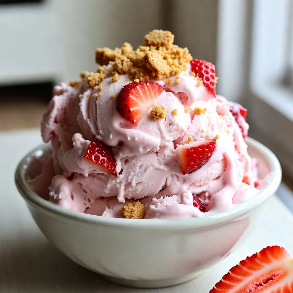 Serve the ice cream in chilled bowls, garnished with fresh strawberry slices and a sprinkle of graham cracker crumbs on top for added texture.