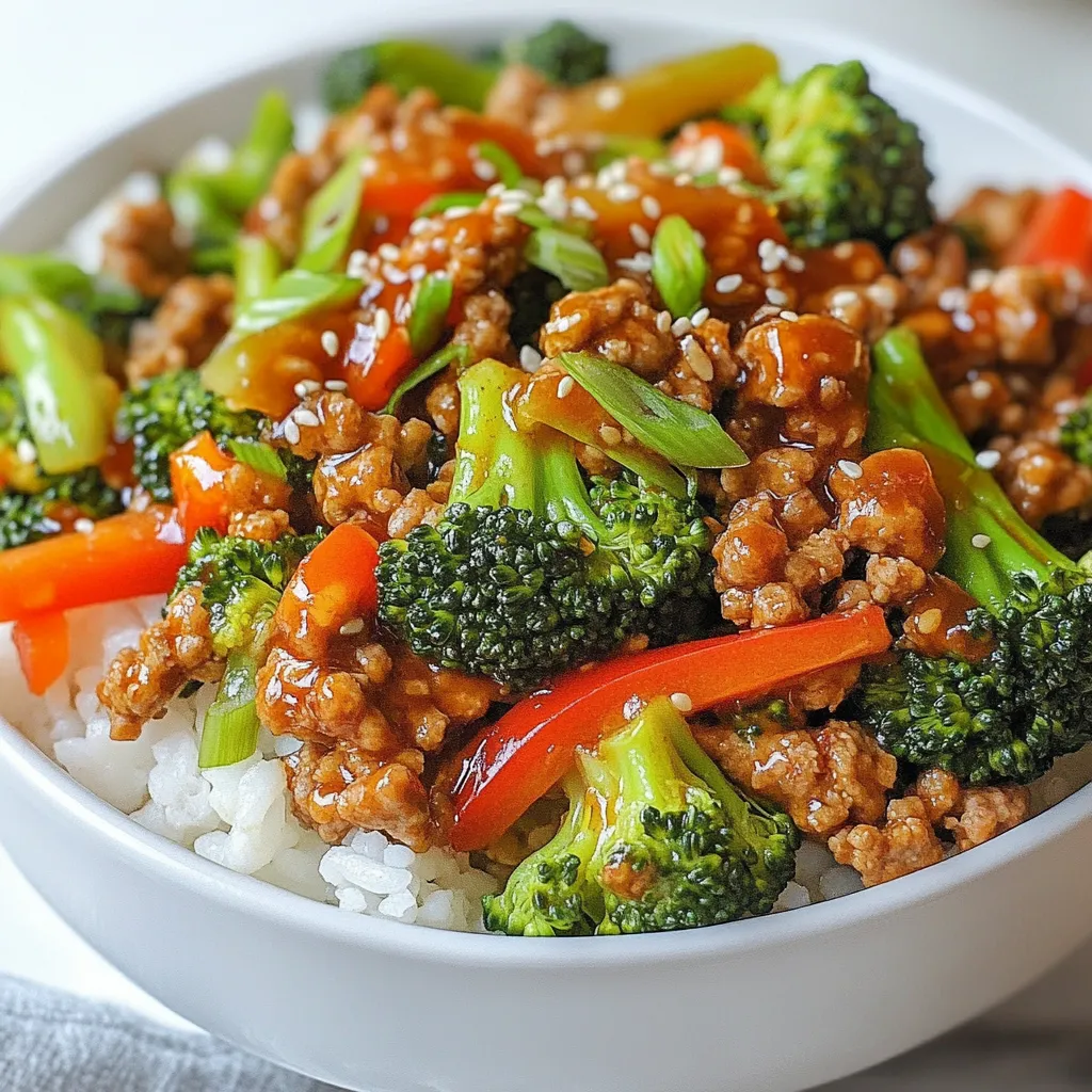 - 1 lb ground turkey - 2 cups broccoli florets - 1 red bell pepper, sliced - 1 medium onion, diced - 2 cloves garlic, minced - 1 tablespoon grated ginger - 2 tablespoons soy sauce or tamari - 1 tablespoon honey or maple syrup - 1 tablespoon sriracha - 1 tablespoon sesame oil - Salt and pepper to taste - Cooked rice or quinoa - Chopped green onions - Sesame seeds {{ingredient_image_1}} - In a small bowl, whisk together: - 2 tablespoons soy sauce (or tamari) - 1 tablespoon honey (or maple syrup) - 1 tablespoon sriracha - Mix until well combined. Set the sauce aside for later use. - Heat 1 tablespoon of olive oil in a large skillet over medium heat. - Add 1 pound of ground turkey. Break it apart with a spatula. - Cook until browned, about 5 to 7 minutes. Season with salt and pepper. - Add 1 diced onion, 2 minced garlic cloves, and 1 tablespoon grated ginger to the skillet. - Sauté until the onion is clear, about 3 minutes. - Stir in 2 cups of broccoli florets and 1 sliced red bell pepper. - Cook for another 5 minutes, stirring often. Keep the veggies bright and tender. - Pour the prepared sauce over the turkey and veggies. Stir well to coat everything. - Let it simmer for 2 to 3 minutes. This helps meld the flavors together. - Serve the mixture over bowls of cooked rice or quinoa. - Top with chopped green onions and a sprinkle of sesame seeds for added crunch. Using a skillet for this recipe works great. A large skillet gives you space to stir. A wok can also work if you have one. It heats up faster and cooks evenly. Cook the ground turkey until it's brown, about 5-7 minutes. The turkey should reach 165°F for safety. When adding veggies, stir for about 5 minutes. You want them tender but still bright. If you want, you can swap ground turkey for chicken or tofu. Both options offer great taste. Chicken is lean, and tofu is plant-based. Feel free to mix in other vegetables too. Try bell peppers, snap peas, or carrots. They will add color and flavor to your bowl. To change the heat, modify the sriracha. Add less for a milder dish or more for a kick. You can also add chili flakes for extra heat. For heat lovers, consider fresh jalapeños or chili paste. They will amp up the spice level and enhance flavor. Enjoy finding your perfect heat! Pro Tips Adjust the Spice Level: Feel free to modify the amount of sriracha according to your heat preference. Start with less if you're unsure, and add more to taste. Use Fresh Ingredients: For the best flavor, use fresh garlic, ginger, and vegetables. They will enhance the overall taste of the dish. Meal Prep Option: This dish is excellent for meal prep! Make a larger batch and store it in airtight containers in the fridge for up to 4 days. Experiment with Veggies: Don’t hesitate to swap in other vegetables like snap peas, carrots, or bell peppers to suit your taste or what you have on hand. {{image_2}} You can switch things up for variety. Try serving your Sweet and Spicy Ground Turkey Broccoli Bowls with cauliflower rice. This makes a great low-carb option. Cauliflower rice has a nice texture and soaks up flavors well. You can also add other colorful veggies. Carrots, snap peas, or bell peppers work great. This adds more crunch and color to your bowl. You can change the flavor easily. Try adding different sauces like teriyaki for a sweet twist. This adds a rich flavor to your dish. Another great idea is to add nuts for crunch. Chopped peanuts or cashews give a nice texture and flavor boost. Just sprinkle them on top before serving. Making this dish ahead of time can save you stress during busy weeks. You can cook a large batch and keep it in the fridge. This way, you have quick meals ready to go. Just reheat and enjoy. You can also freeze the mixture for later dinners. Make sure to store it in airtight containers. When you're ready to eat, just thaw and reheat. - How Long it Lasts in the Fridge Store the Sweet and Spicy Ground Turkey Broccoli Bowls in the fridge. They keep well for about 3 to 4 days. Make sure to cool them to room temp before storing. - Best Containers for Storage Use airtight containers for the best results. Glass containers work great since they are easy to clean and do not stain. - Steps for Proper Freezing First, let the dish cool completely. Then, portion it into freezer-safe bags or containers. Remove as much air as possible before sealing. Label the bags with the date. - Reheating Tips for Freshness When you want to eat, thaw the bowls in the fridge overnight. For best taste, reheat in a skillet over medium heat. Add a splash of water to keep it moist. - Stove vs. Microwave I recommend using the stove for reheating. It warms the food evenly and keeps the texture nice. The microwave is quicker, but it can make the veggies a bit soggy. - Ensuring Even Heating When using the microwave, stir the bowl halfway through. This helps distribute the heat and ensures your meal warms up evenly. Yes, you can use frozen broccoli in this recipe. Frozen broccoli is quick and easy. It cooks faster than fresh, saving you time. However, frozen broccoli can be softer. It may lose some crunch compared to fresh. If you use frozen, adjust cooking time. These bowls are great on their own, but you can add sides. Here are some ideas: - Steamed edamame - Crispy spring rolls - A fresh green salad - Roasted sweet potatoes - A side of kimchi These sides can add more flavor and texture to your meal. Yes, this recipe can be gluten-free. Just use tamari instead of soy sauce. Tamari is a gluten-free soy sauce alternative. Double-check your other ingredients too. Some brands of sriracha contain gluten. Always read labels to ensure safety. Enjoy your bowls worry-free! This recipe highlights the mix of ground turkey, fresh veggies, and flavorful sauces. You learned how to cook and store a healthy meal, making it perfect for any weeknight. Remember, you can swap ingredients easily to fit your taste. Experiment with different sauces and veggies for fun variations. Meal 