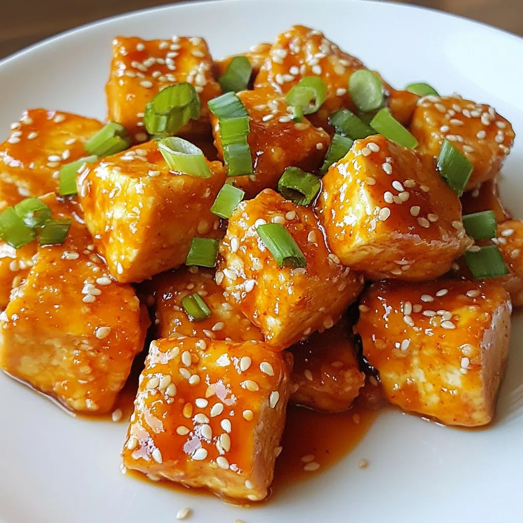 - 1 block of extra-firm tofu, pressed and cubed - 2 tablespoons vegetable oil - 4 cloves garlic, minced - 1/4 cup sweet chili sauce - 2 tablespoons soy sauce - 1 tablespoon brown sugar - 1 tablespoon rice vinegar - 1 teaspoon cornstarch mixed with 2 tablespoons water - 1 green onion, sliced - Sesame seeds Let’s dive into the key ingredients for making sweet chili garlic tofu. This dish starts with a block of extra-firm tofu. It holds its shape well and absorbs flavors nicely. I recommend pressing the tofu first. This will help get rid of excess water. When you cube it, aim for bite-sized pieces. They cook evenly and soak up the sauce perfectly. Next, you need vegetable oil for frying. It creates a nice, crispy texture on the tofu. You'll also need garlic cloves. Mince them finely to release their full flavor. Now, let’s talk about the sauce. The sweet chili sauce gives a nice balance of sweetness and spice. Soy sauce adds saltiness, while brown sugar brings extra sweetness. Rice vinegar adds a tangy kick. Finally, cornstarch mixed with water thickens the sauce. This creates a nice glaze for your tofu. To finish your dish, you’ll use green onion and sesame seeds as garnishes. The green onion adds freshness, and sesame seeds give a nice crunch. Each ingredient plays a role in making this dish flavorful and fun to eat. {{ingredient_image_1}} First, you need to press the tofu. This helps remove excess water. Wrap the tofu in a clean cloth. Place a heavy pan on top for 15-20 minutes. This step is key for crispy tofu. After pressing, cut the tofu into bite-sized cubes. Next, heat the vegetable oil in a large skillet over medium heat. Once the oil is hot, add the cubed tofu. Cook each side for about 4-5 minutes. You want the tofu to turn golden brown and crispy. Once done, remove the tofu from the pan and set it aside. Now it's time to make the sauce. In the same pan, add the minced garlic. Sauté it for about 30 seconds until it smells great. Be careful not to burn the garlic. In a small bowl, mix the sweet chili sauce, soy sauce, brown sugar, rice vinegar, and red pepper flakes if you want some heat. Pour this mixture into the pan with the garlic. Bring it to a simmer. To thicken the sauce, add the cornstarch mixed with water. Stir it continuously for about 2-3 minutes. You'll know it's thick enough when it coats the back of a spoon. Carefully add the crispy tofu back into the pan. Toss it in the sauce to coat every piece evenly. Cook for an additional 2-3 minutes so the tofu absorbs all the flavors. When it's done, remove it from the heat. Garnish with sliced green onion and sesame seeds before serving. Enjoy your sweet chili garlic tofu! To get the best tofu, you must press it well. - Wrap your tofu in a clean towel. - Place a heavy pan on top for 15-20 minutes. This removes excess water. A dryer tofu absorbs flavors better. For crispy tofu, follow these steps: - Cut your pressed tofu into bite-sized cubes. - Heat your oil in a skillet until hot. - Cook tofu in a single layer for 4-5 minutes per side. You want it golden brown and crispy. Sweet chili garlic tofu pairs well with rice or noodles. - Jasmine rice adds a nice touch. - Lo mein noodles soak up the sauce well. Add some vegetables for color and crunch: - Broccoli and bell peppers work great. - Snap peas or bok choy add freshness. Overcooking tofu makes it tough. - Keep an eye on it while cooking. - Remove it from the pan once golden brown. Don’t skip thickening the sauce. - Mix cornstarch with water before adding it to the sauce. - This step gives the sauce a nice, sticky texture. Following these tips will help you create a dish that is flavorful and satisfying! Pro Tips Press the Tofu Well: Make sure to press the tofu for at least 15-20 minutes to remove excess moisture, ensuring it becomes crispy when cooked. Use High Heat: Cooking the tofu on medium-high heat helps achieve a golden crust. Avoid overcrowding the pan to ensure even cooking. Customize the Heat Level: Adjust the amount of red pepper flakes according to your heat preference, or omit them entirely for a milder dish. Garnish for Presentation: Always finish your dish with fresh garnishes like green onions and sesame seeds to add color and texture. {{image_2}} You can make this dish even better by adding vegetables. Some great options are bell peppers, broccoli, or snap peas. These veggies add color and crunch. Just chop them into small pieces and toss them in the pan after you add the garlic. If you want to add more protein, consider chickpeas or edamame. Both options work well and boost the nutrition of your meal. Cook them with the tofu for a hearty dish. You can use homemade sweet chili sauce for a fresher taste. To make your own, mix sugar, vinegar, and chili paste. This gives you total control over the flavors. If you want a gluten-free option, swap soy sauce for tamari. It tastes similar but is safe for those with gluten issues. To spice things up, try adding fresh peppers. Jalapeños or serranos work great. Just chop them finely and toss them in with the garlic. This will give the dish a nice kick. If you prefer a milder flavor, you can skip the red pepper flakes. You can also use less sweet chili sauce. This way, you can enjoy the dish without too much heat. To keep your sweet chili garlic tofu fresh, follow these tips: - Refrigeration Guidelines: Place leftover tofu in an airtight container. Store it in the fridge for up to three days. Always let it cool before sealing to avoid moisture buildup. - Best Containers for Storage: Use glass or BPA-free plastic containers. These materials help keep your food fresh. Make sure the container has a tight seal to prevent air from entering. When you are ready to enjoy your leftovers, reheating is key: - Methods for Reheating Tofu: You can reheat tofu in a skillet over medium heat. This method helps restore some of its original crispiness. Alternatively, use a microwave for quick warming, but be careful not to overhea