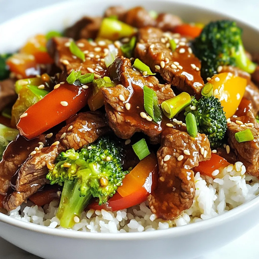 The teriyaki sauce is simple yet rich. Low-sodium soy sauce keeps it savory without being too salty. Honey or maple syrup gives it that sweet touch. Sesame oil adds a nutty flavor that ties everything together. The cornstarch slurry thickens the sauce, making it stick to the beef and veggies.
